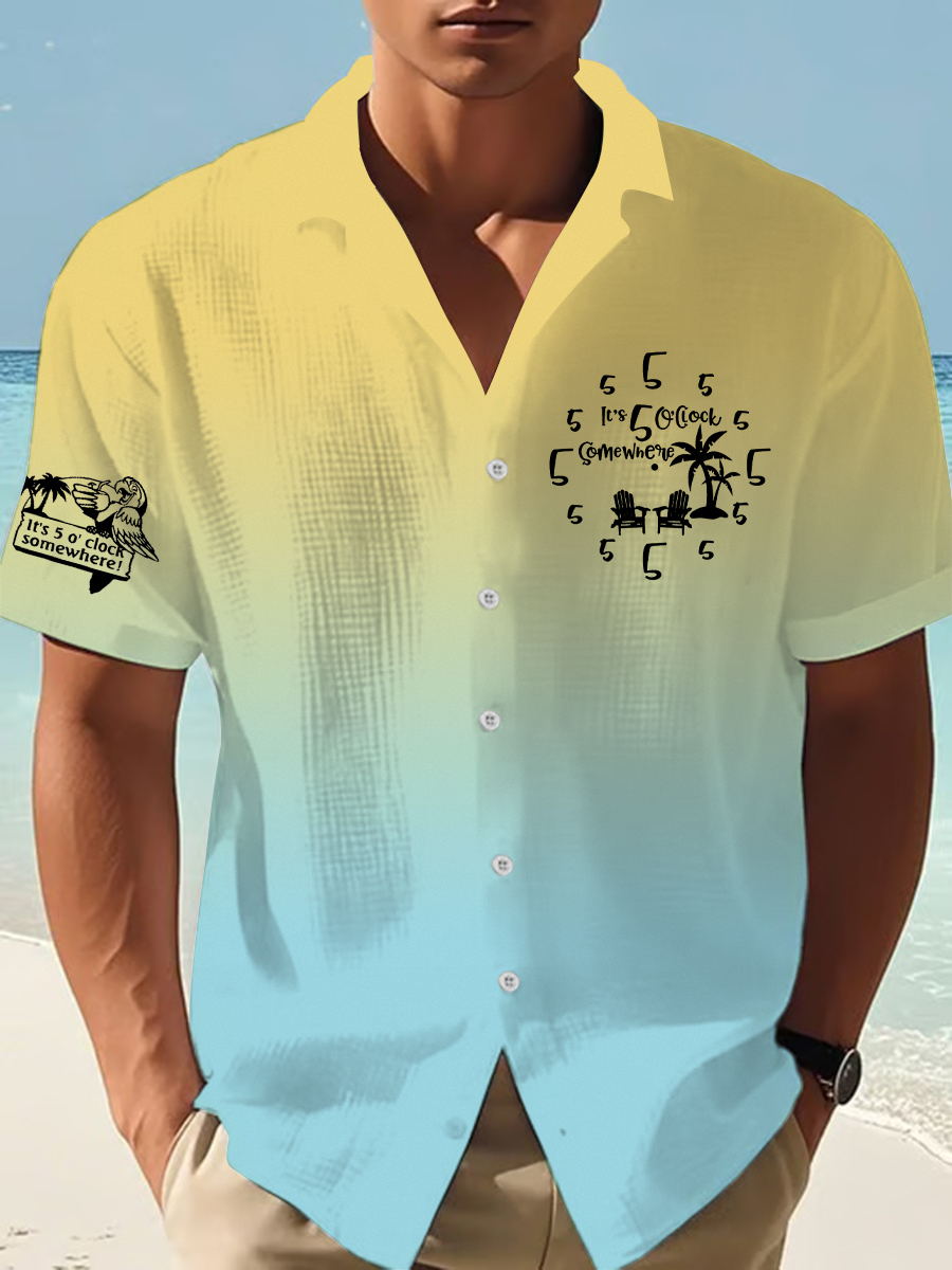Men's It's 5:00 Somewhere Always Happy Hour Paradise Parrot Printed Short Sleeve T-Shirt