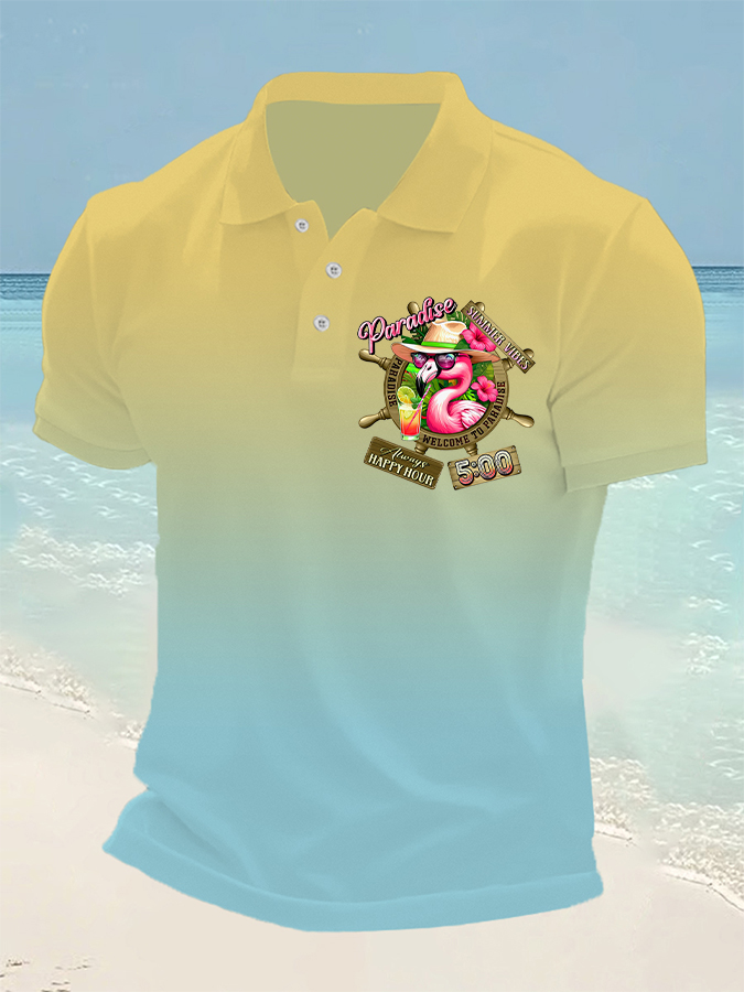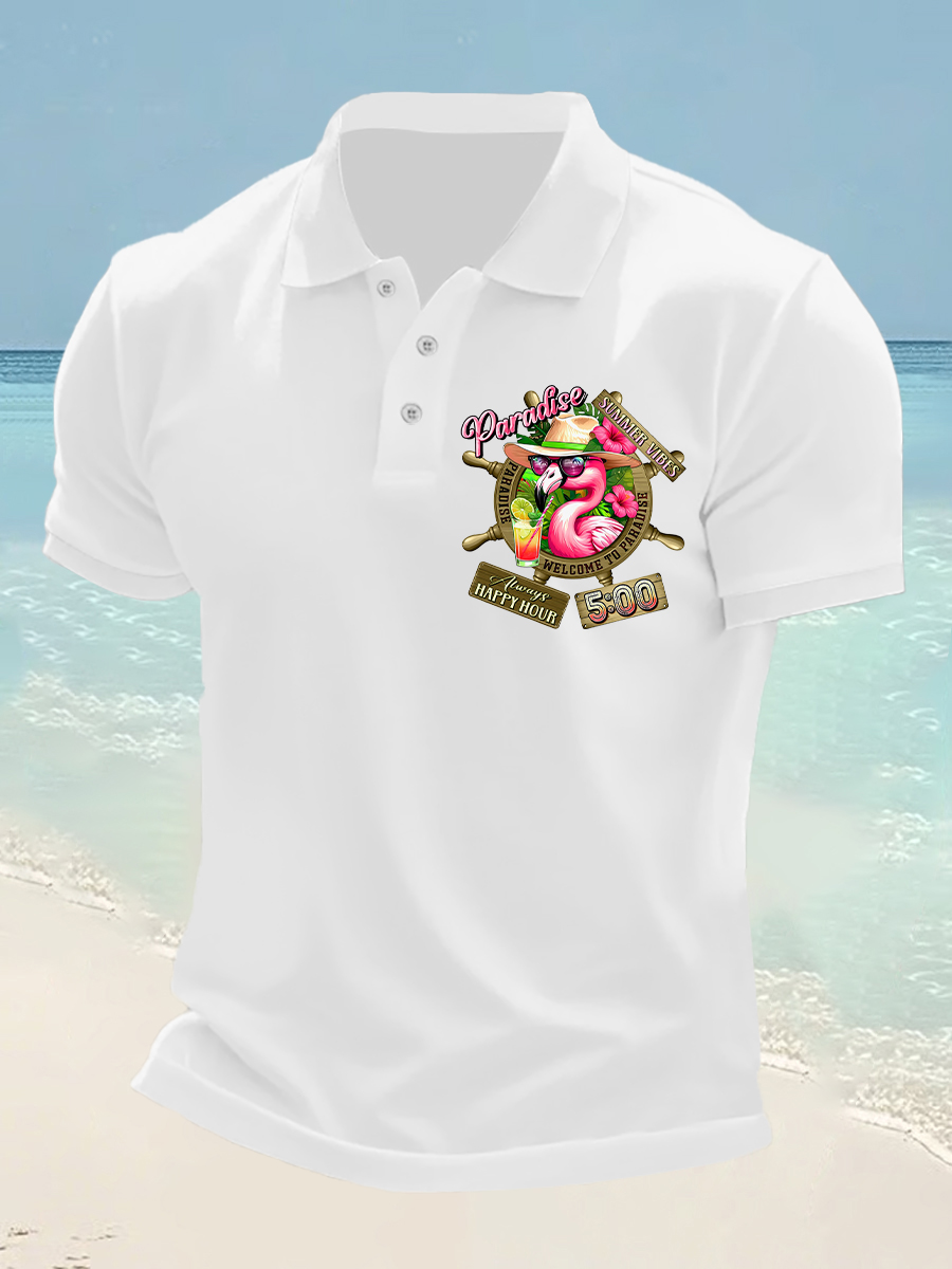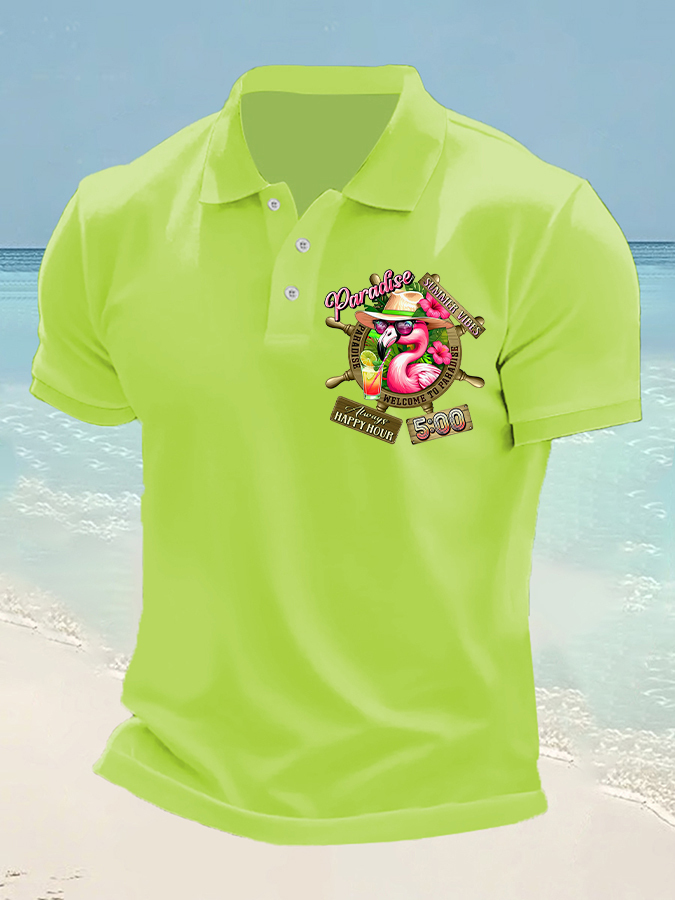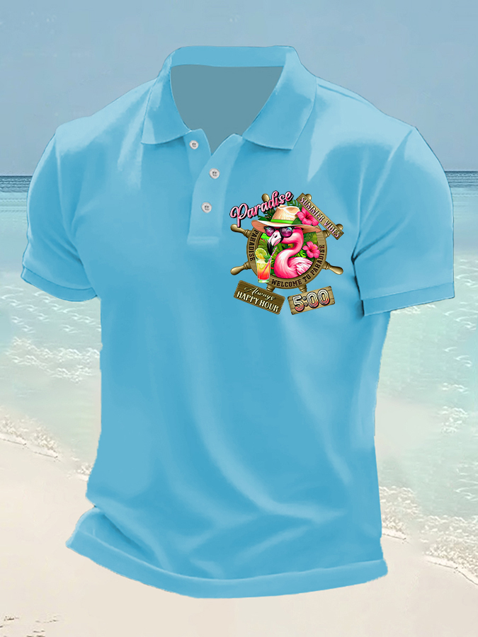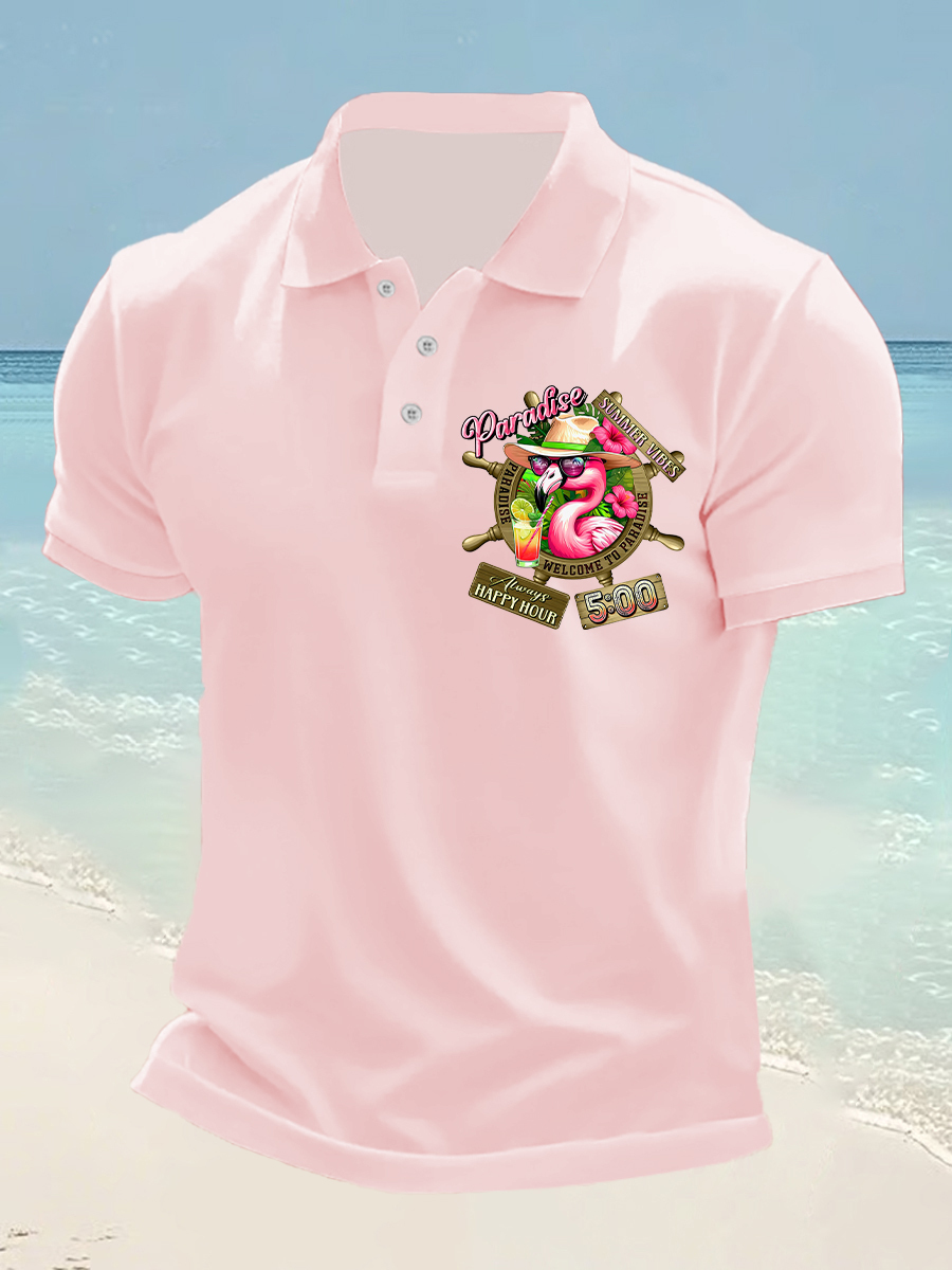 Men's It's 5 O'clock Somewhere Flamingo Print Casual Short Sleeve Top