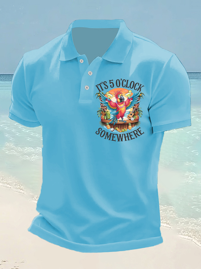 Men's It's 5 O'clock Somewhere Parrot Print Casual Short Sleeve Top