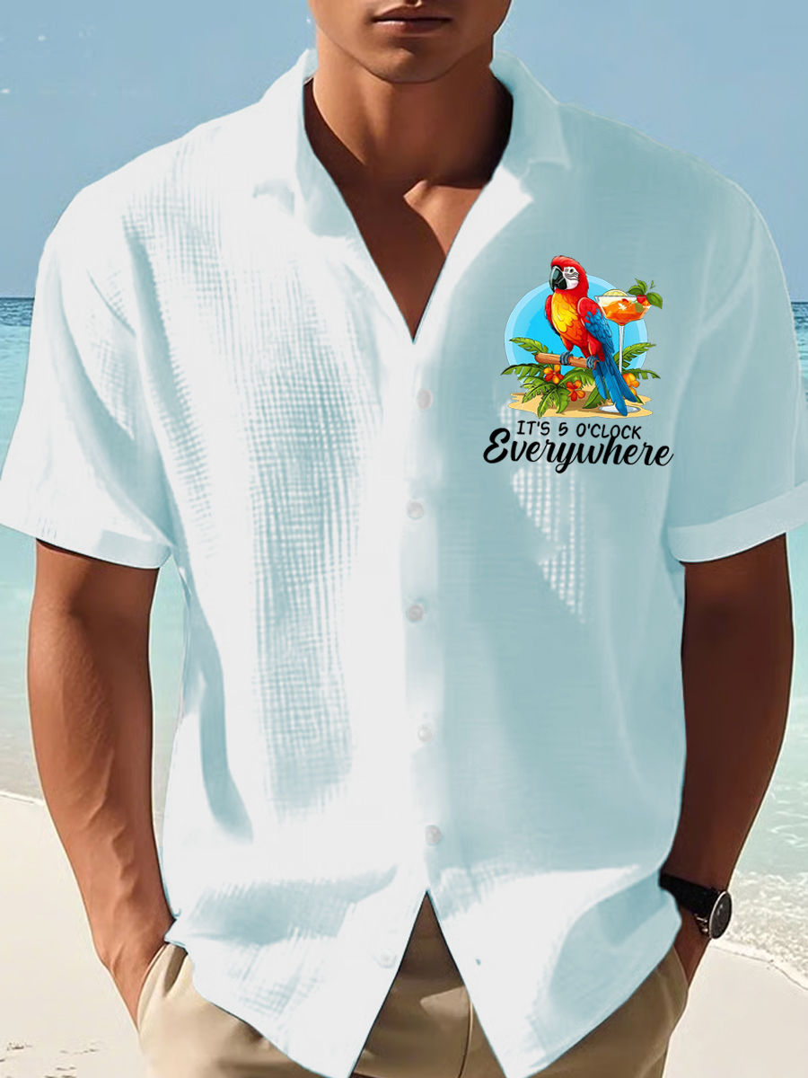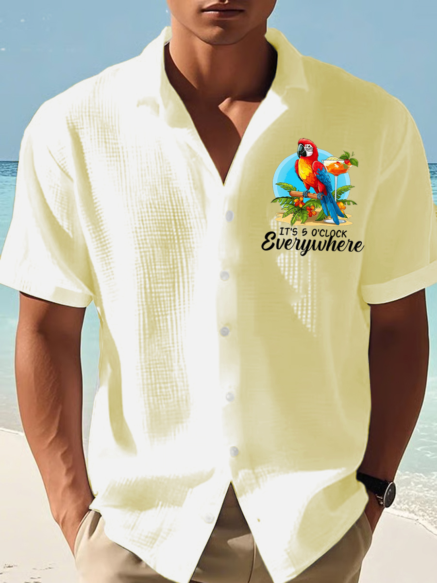 Men's It's 5 O'clock Somewhere Parrot Print Casual Waffle Short-Sleeve Shirt