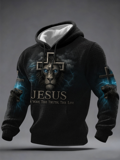 Men's Jesus The Way The Truth The Life Lion Print Casual Checkered Hoodie