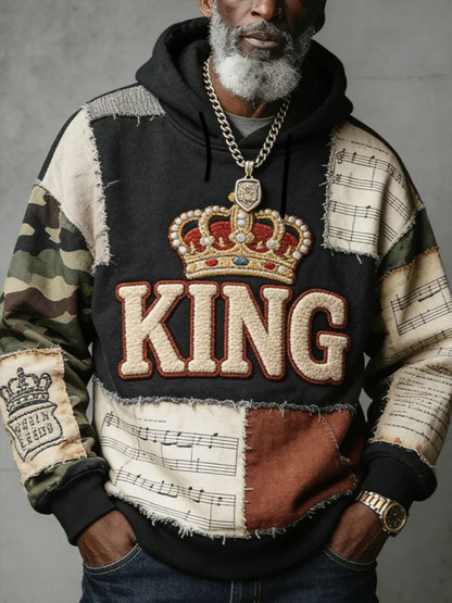 Men's King Patchwork Oversized Drop-Shoulder Hoodie With Pockets