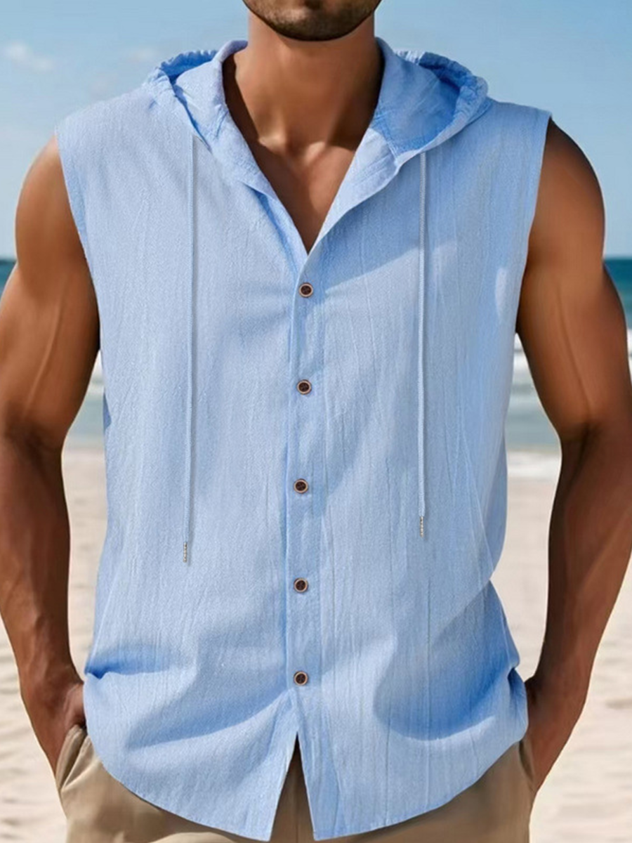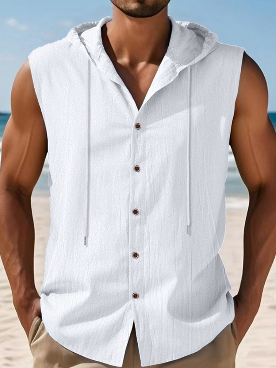 Men's Linen Casual Hooded Vest Sleeveless Shirt