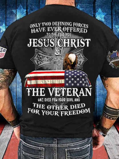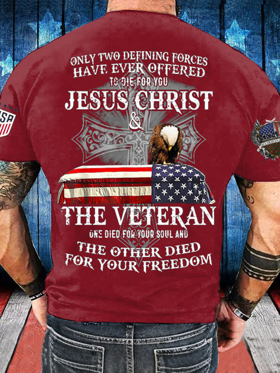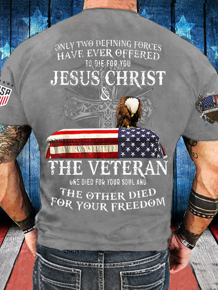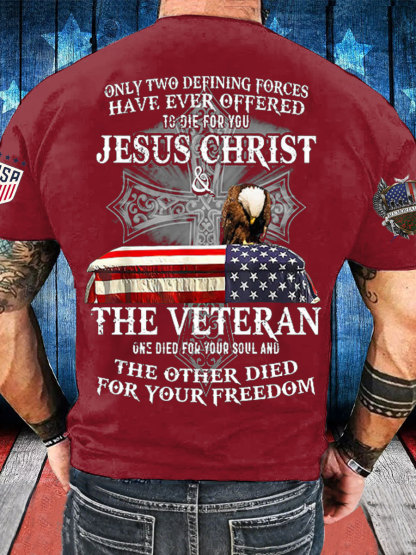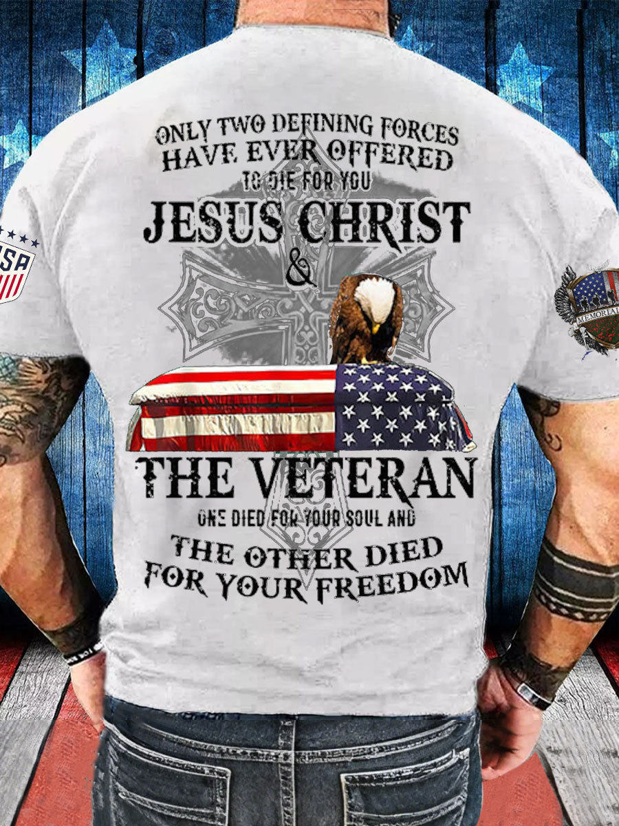 Men's Memorial Day The Veteran And Jesus Printed T-shirt
