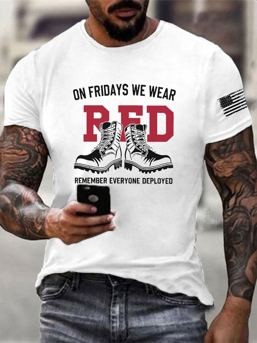 Men's On Fridays We Wear Red Remember Everyone Deployed T-shirt