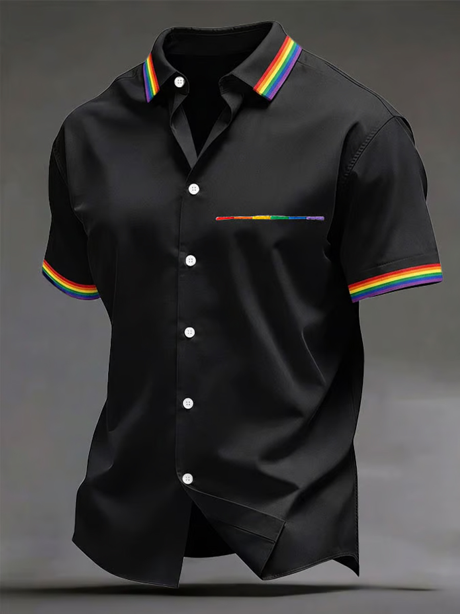 Men's Pride Month Rainbow-Print Casual Short Sleeve Shirt