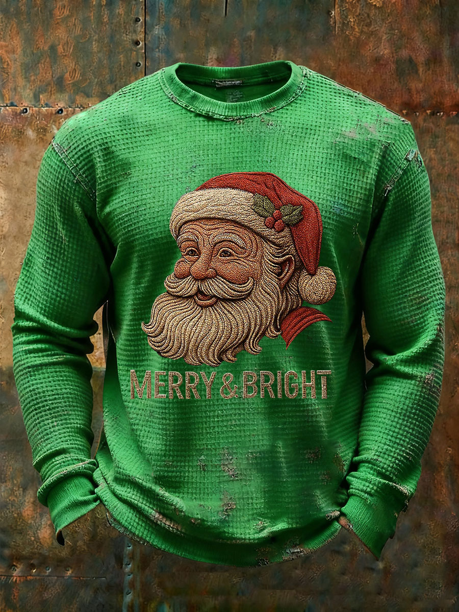 Men's Santa Claus Waffle Print Casual T-shirt