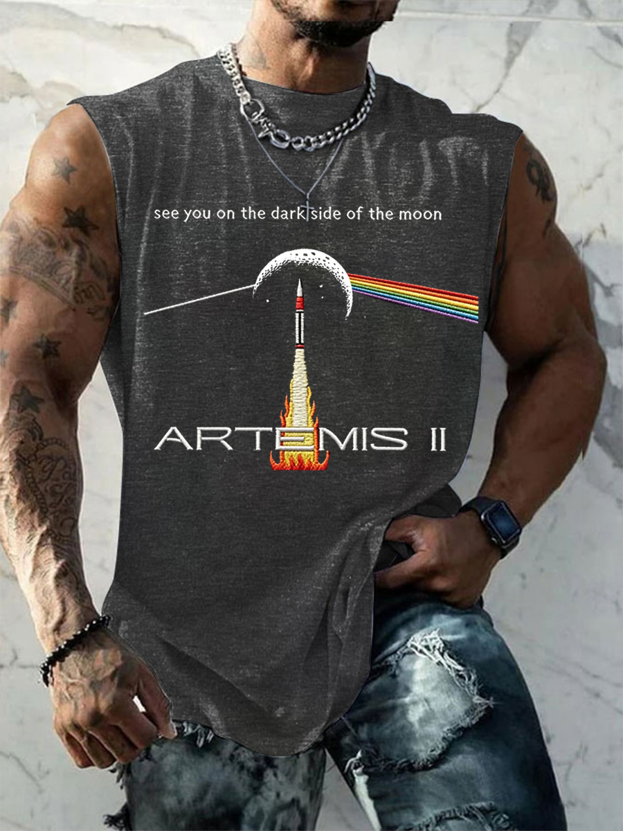 Men's See You On The Dark Side Of The Moon Artemis II 2026 Print Casual Tank Top