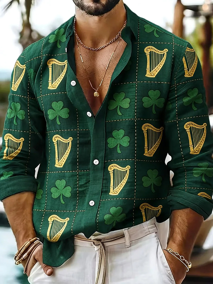 Men's St Patrick’s Day Shamrock Art Long Sleeve Shirt