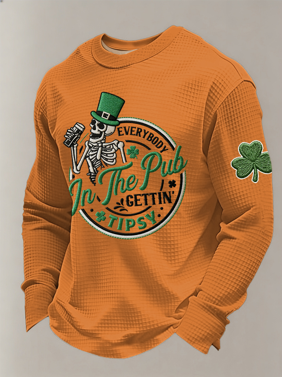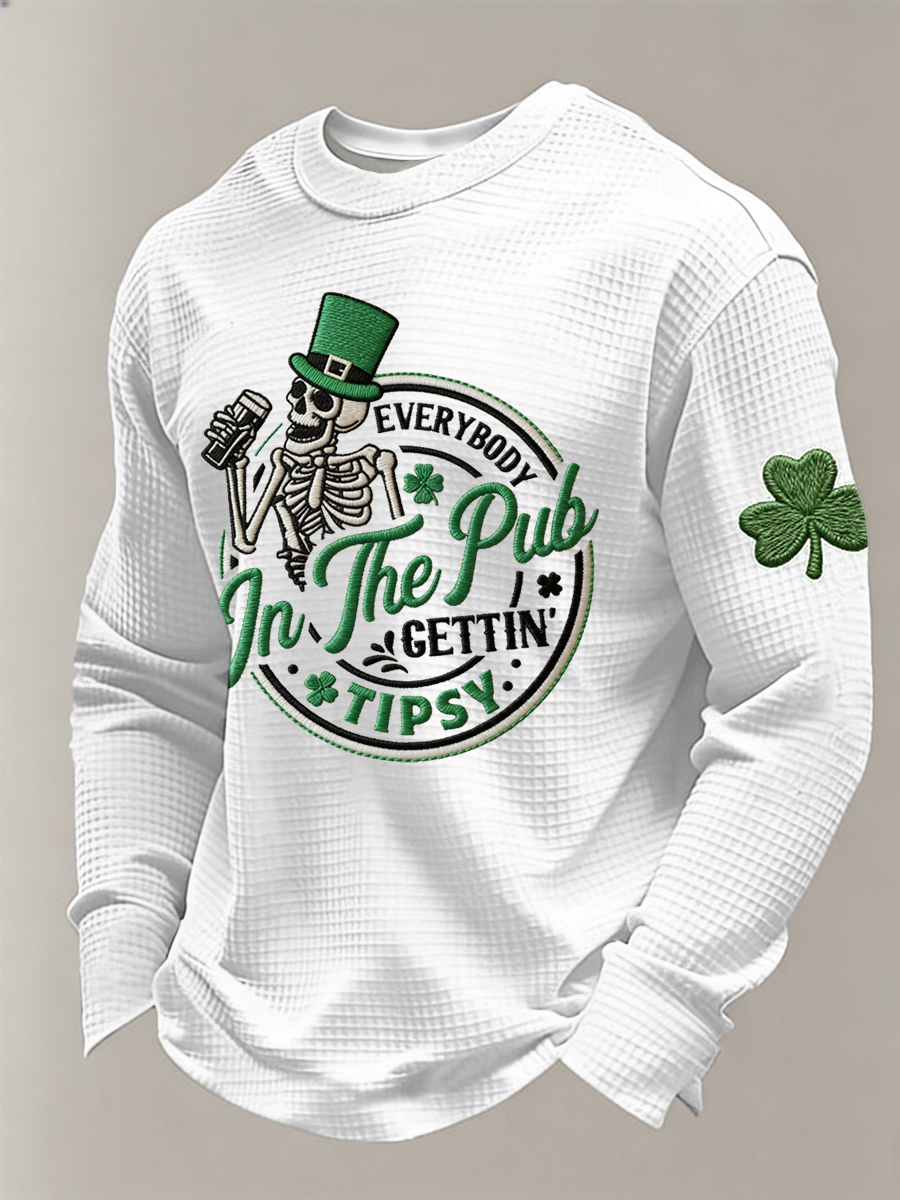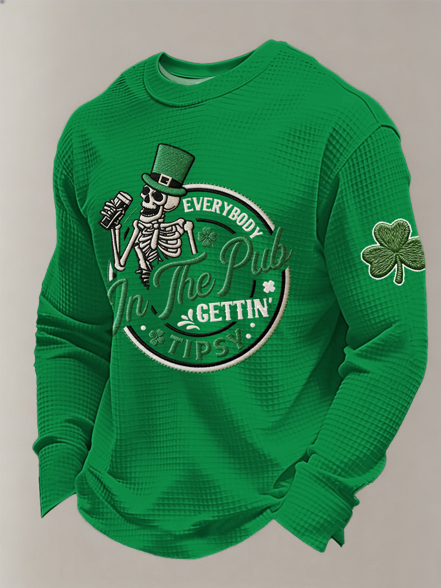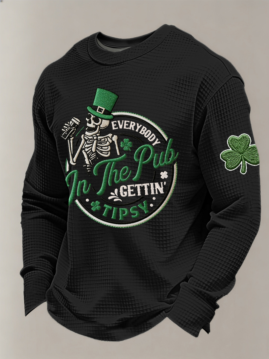 Men's St Patrick's Day Everybody In The Pub Gettin Tipsy Skeleton Shamrock Print Casual Waffle Sweatshirt