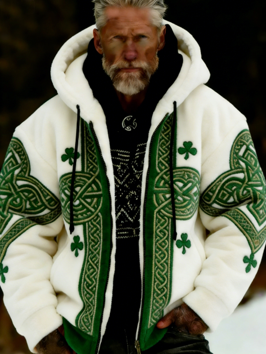 Men's St Patrick's Day Plush Cozy Warm Zipped Hooded Jacket