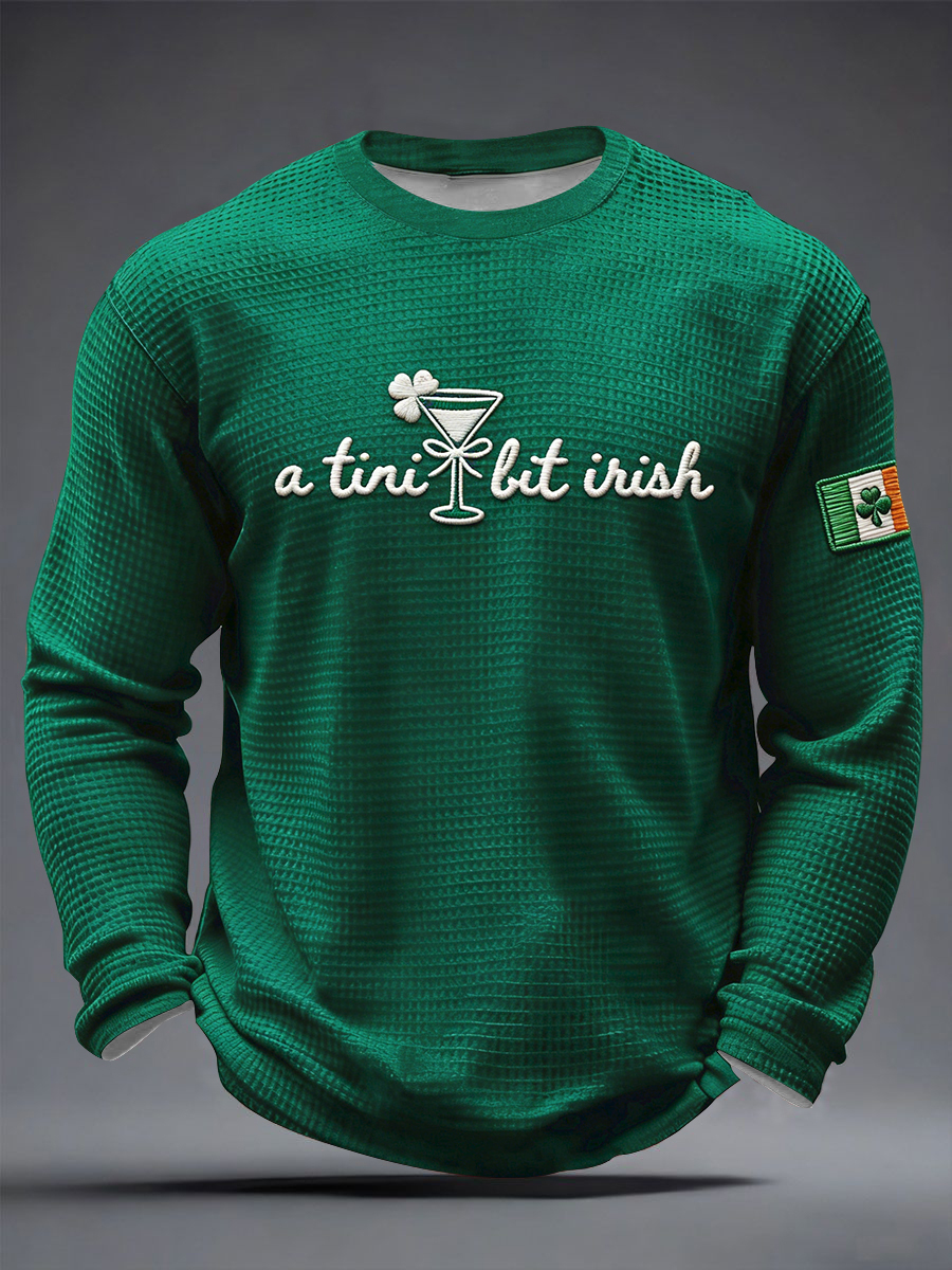 Men's St Patrick's Day Shamrock Art Waffle Long Sleeve T-Shirt
