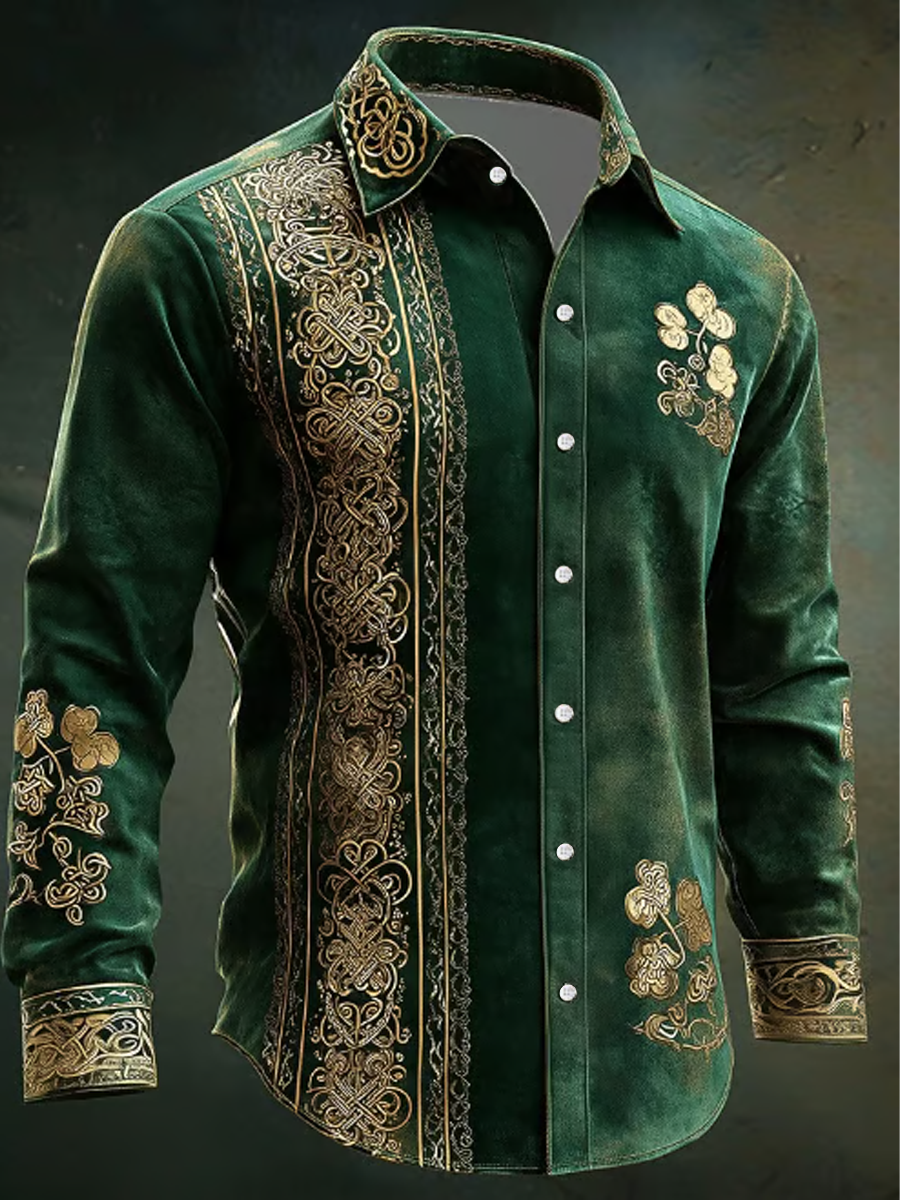 Men's St. Patrick's Day Celtic Cross Intricate Floral Shirt