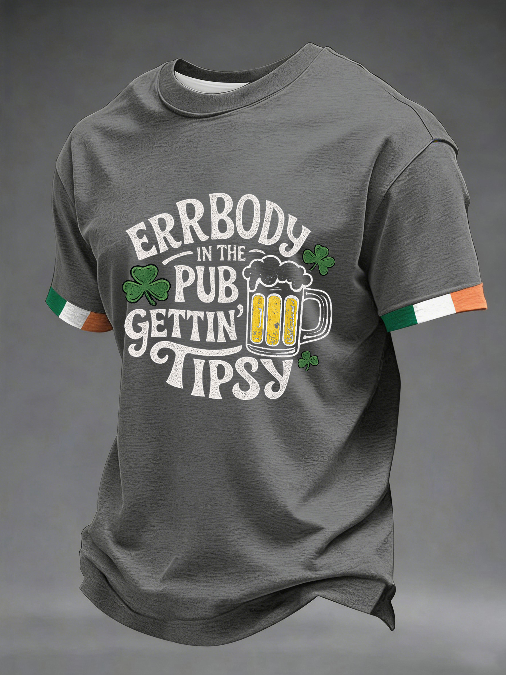 Men's St. Patrick's Day Errbody In The Pub Geetin Tipsy Beer Printed T-shirt