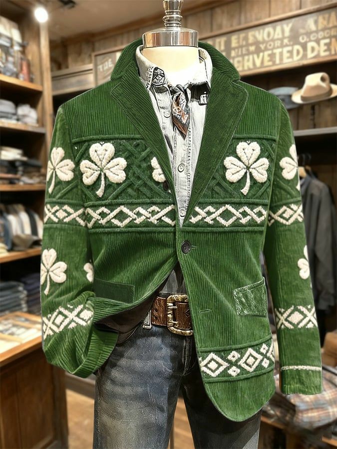 Men's St. Patrick's Day Print Casual Lapel Suit