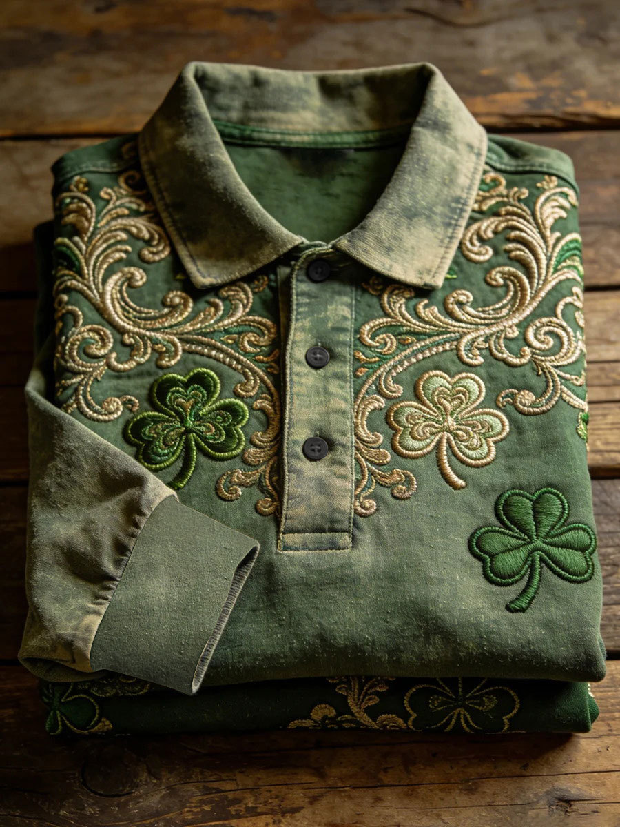 Men's St. Patrick's Day Printed Casual Button-Up T-Shirt