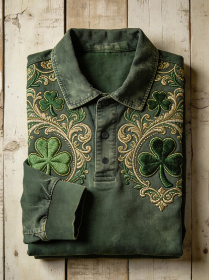 Men's St. Patrick's Day Printed Casual Button-Up T-Shirt