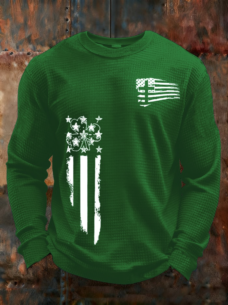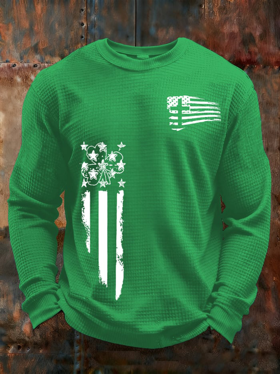 Men's St. Patrick's Day Shamrock Print Waffle Long Sleeve T-Shirt