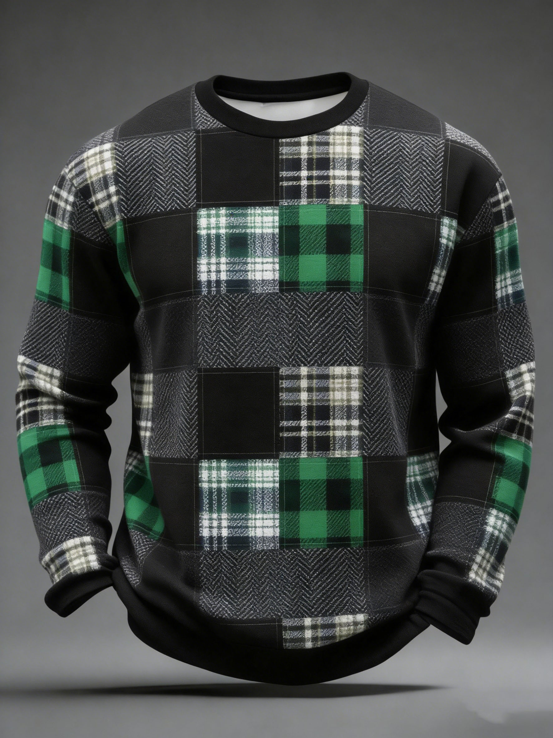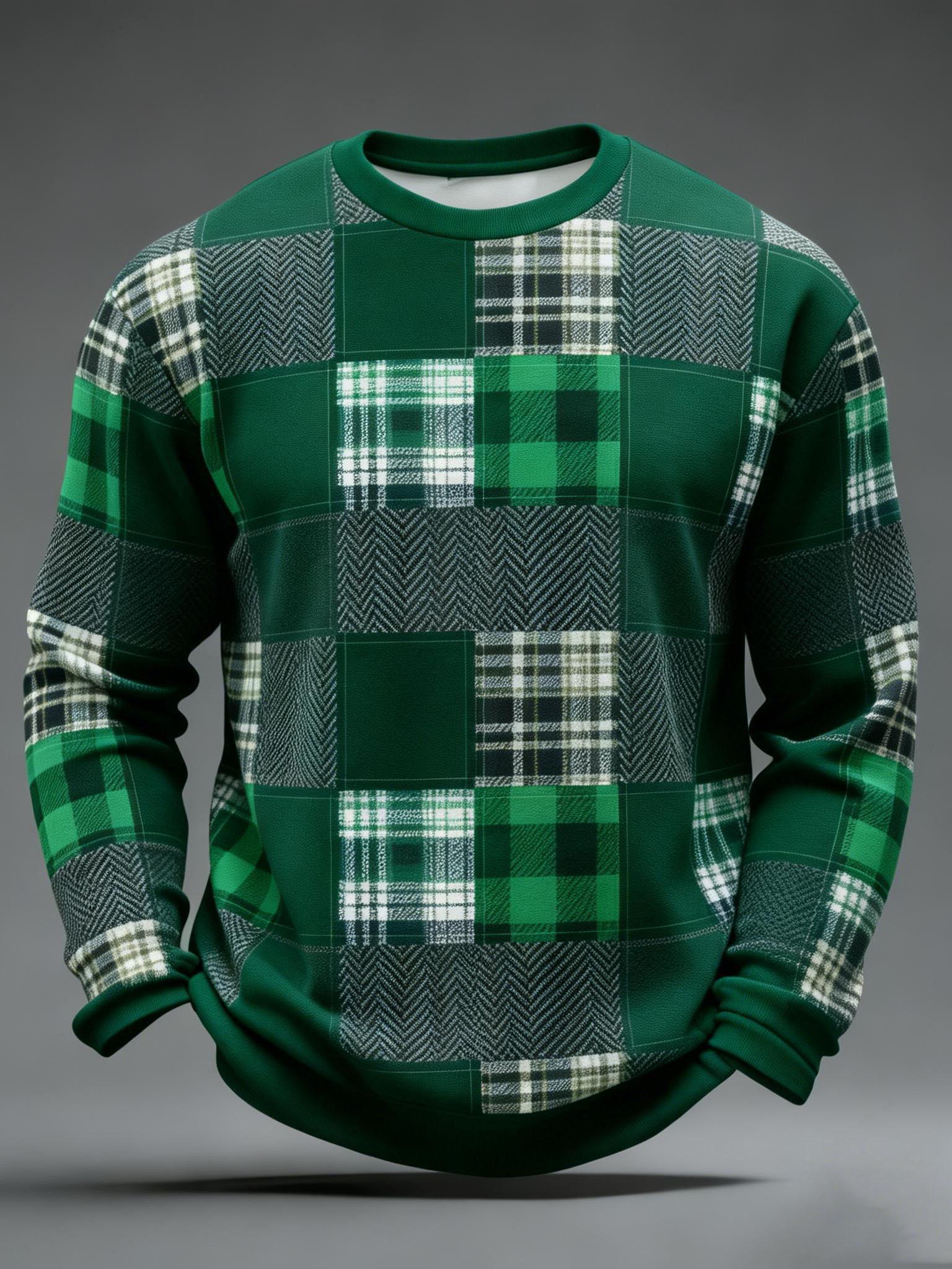 Men's St. Patrick's Day Tartan Patchwork Printed Sweatshirt