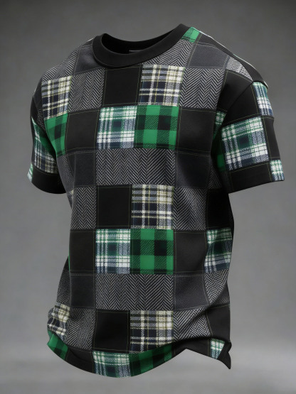 Men's St. Patrick's Day Tartan Patchwork Printed T-shirt