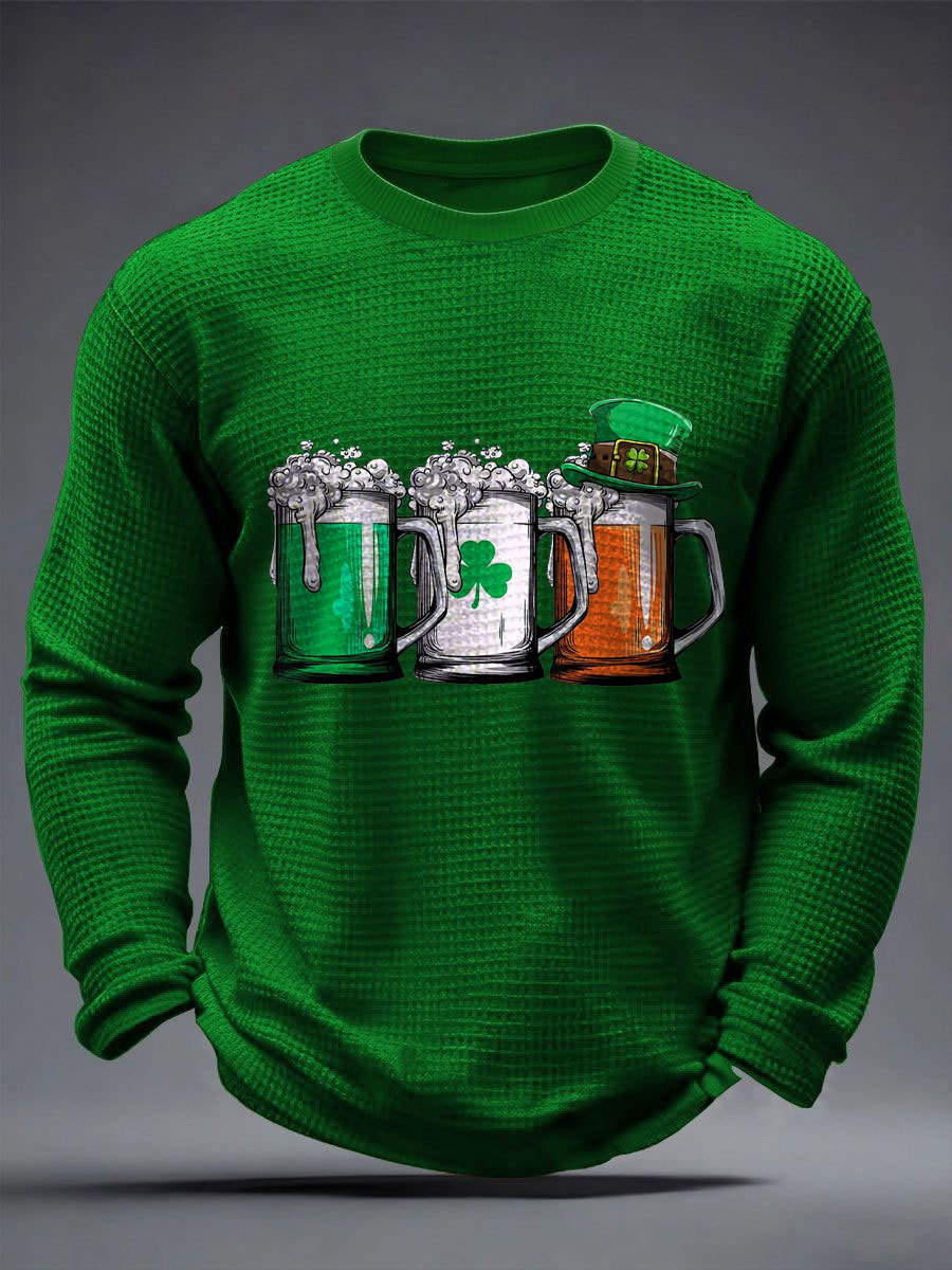 Men's St.Partricks Day Shamrocks Printed Waffle Tops