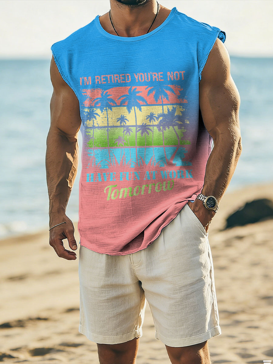 Men's Vacation Style Funny Retirement Printed Tank Tops