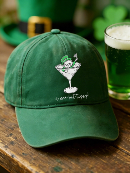 Unisex Funny St Patrick's Day A Wee Bit Tipsy! Shamrock Print Hat