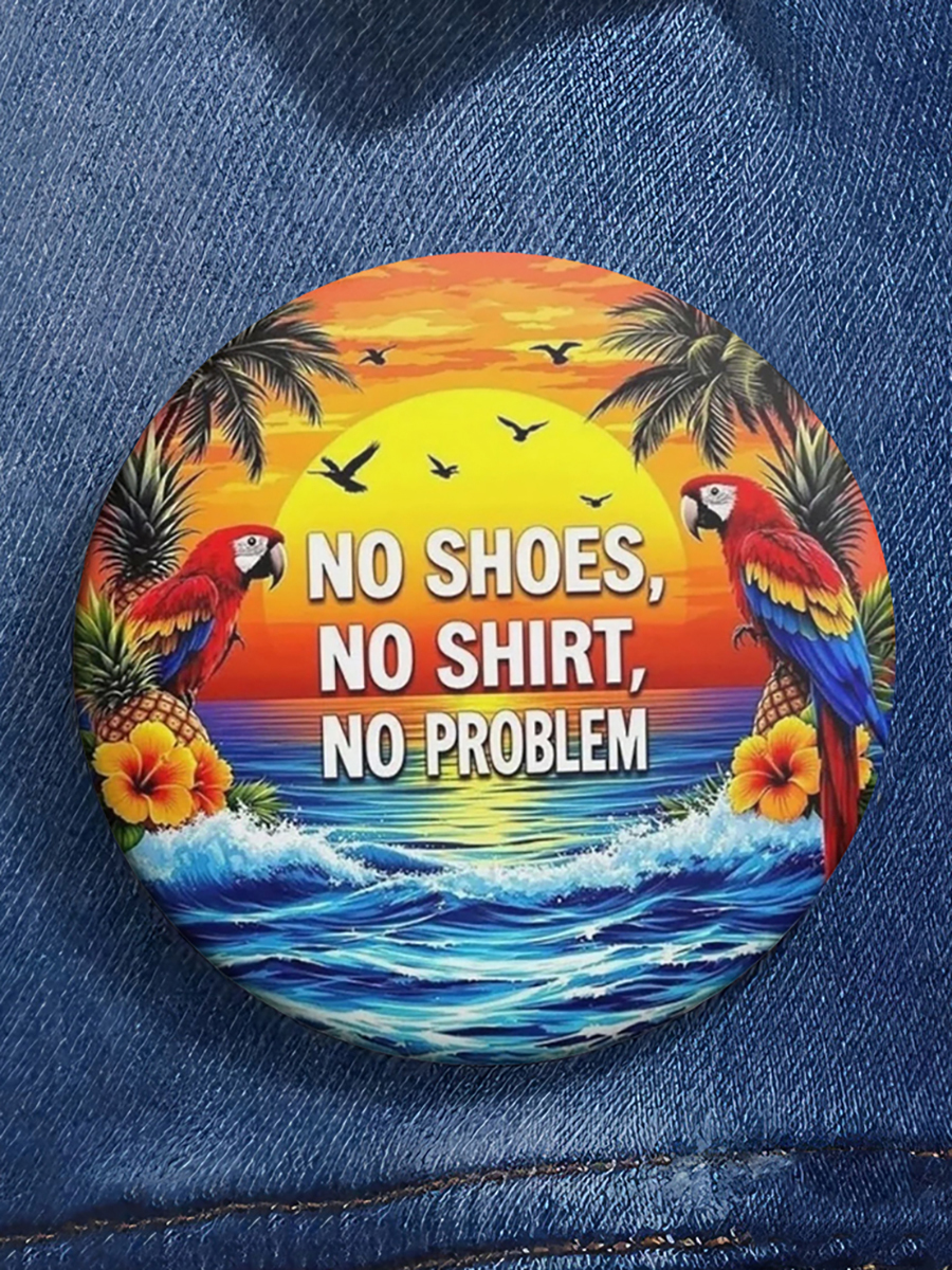 Unisex No Shoes No Shirt No Problems Print Brooch