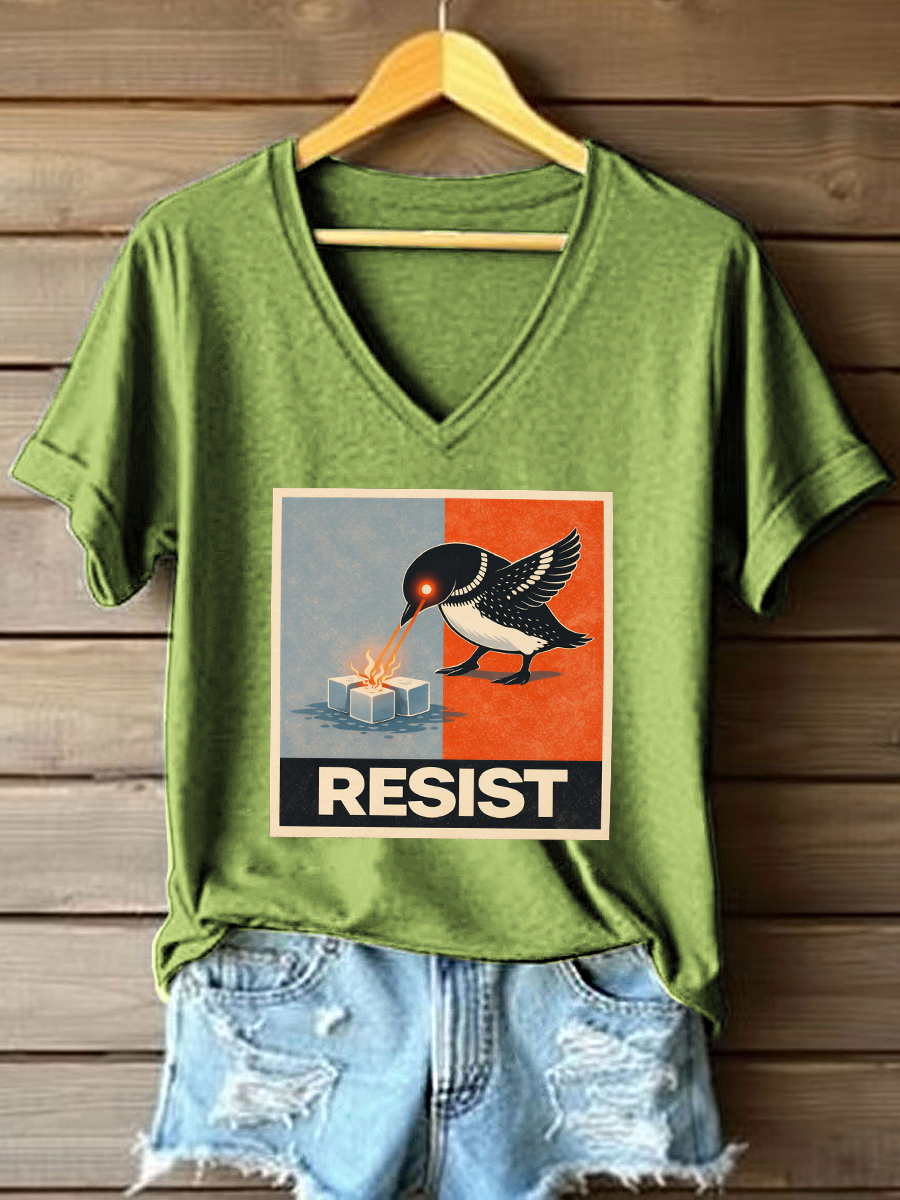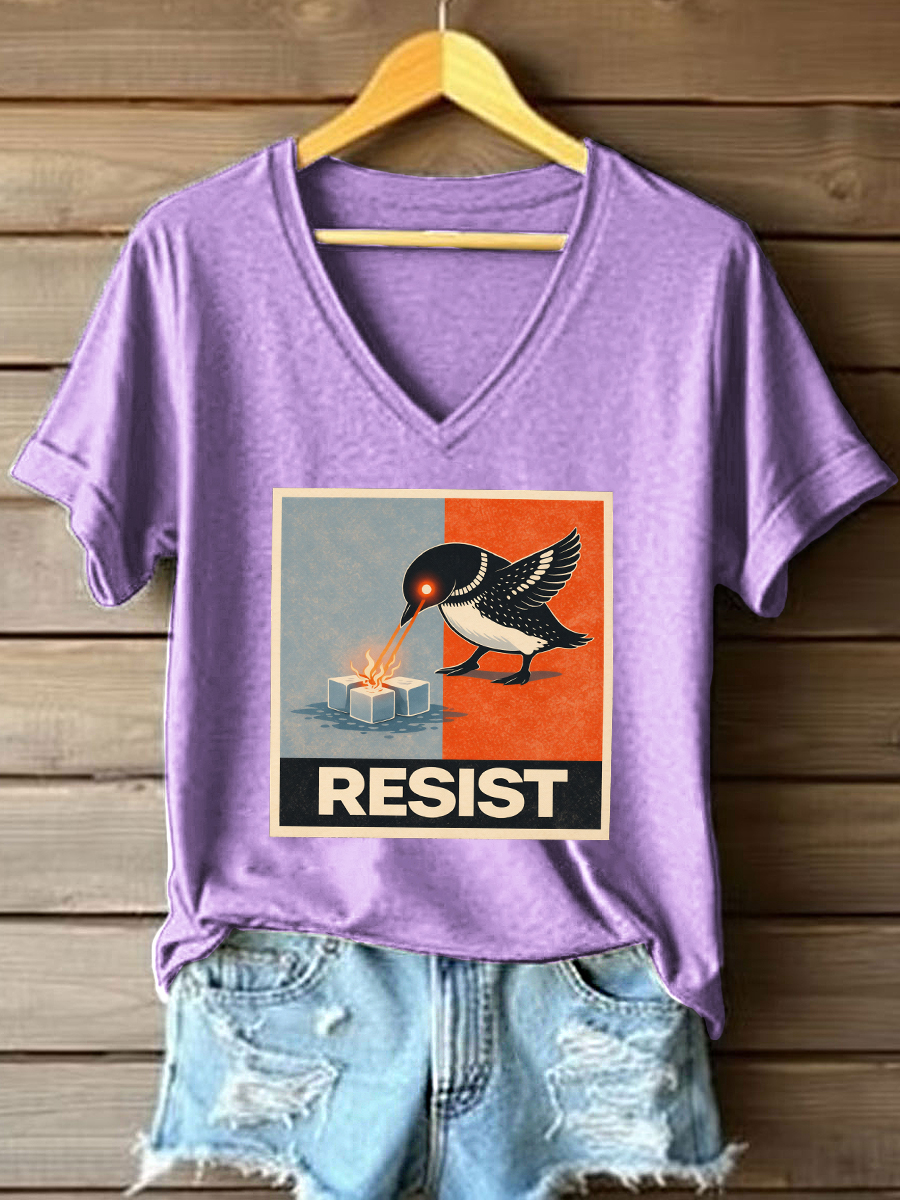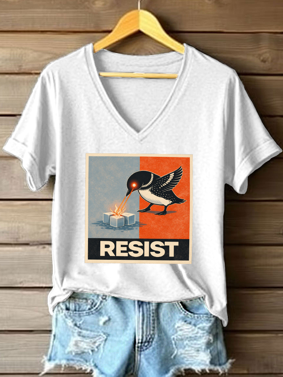 Women's Abolish ICE Loon Print V-Neck T-Shirt
