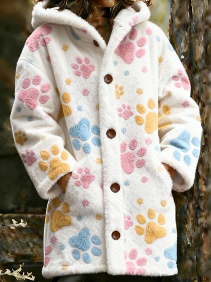 Women's Animal Paw Print Flannel Warm Jacket