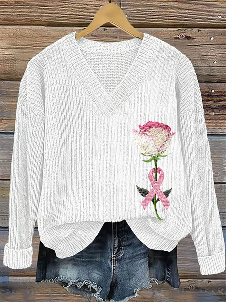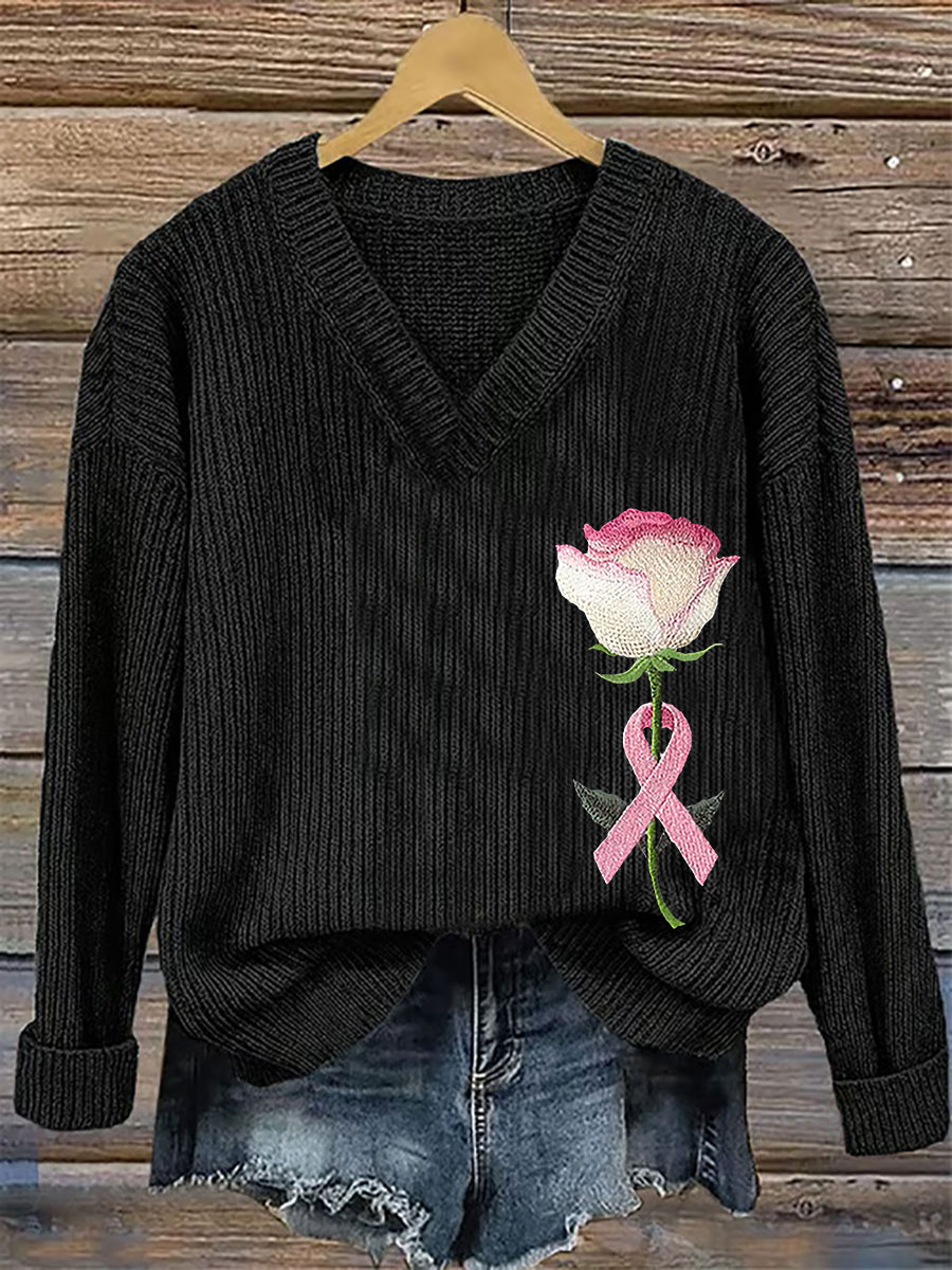 Women's Breast Cancer Awareness Pink Ribbon Print Casual Top