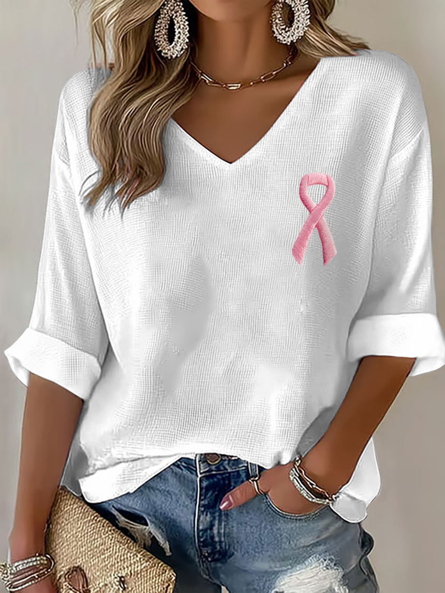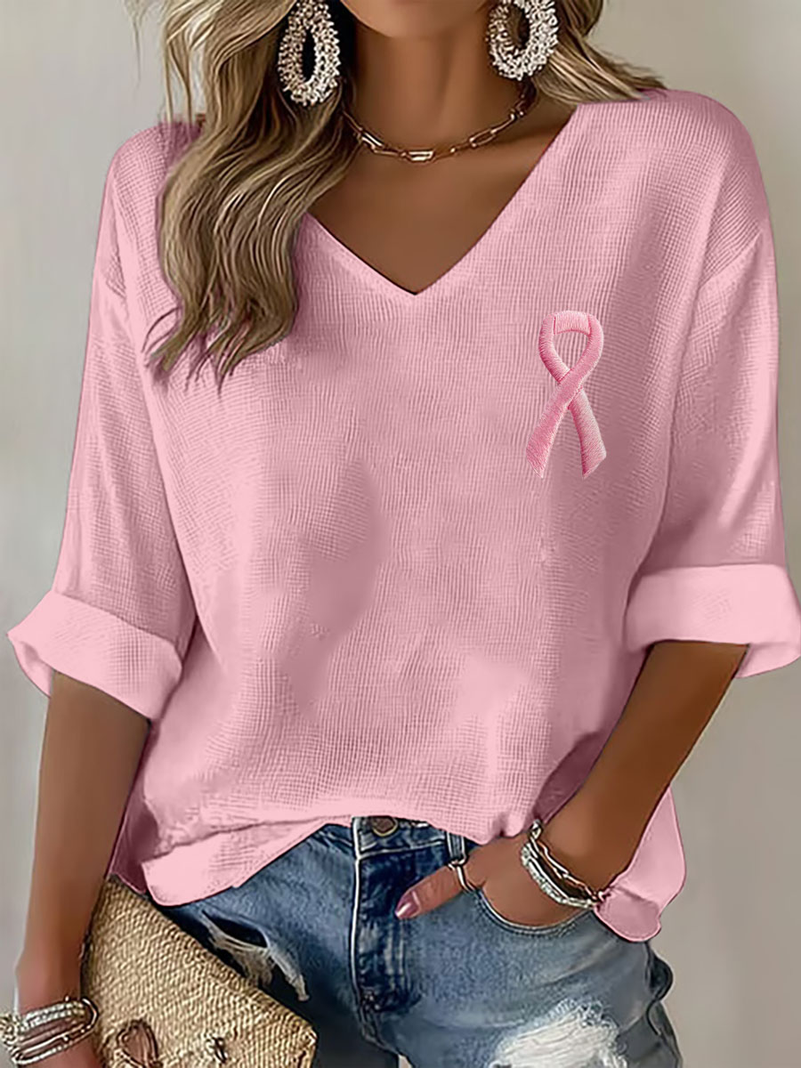 Women's Breast Cancer Awareness Pink Ribbon V-Neck Tops