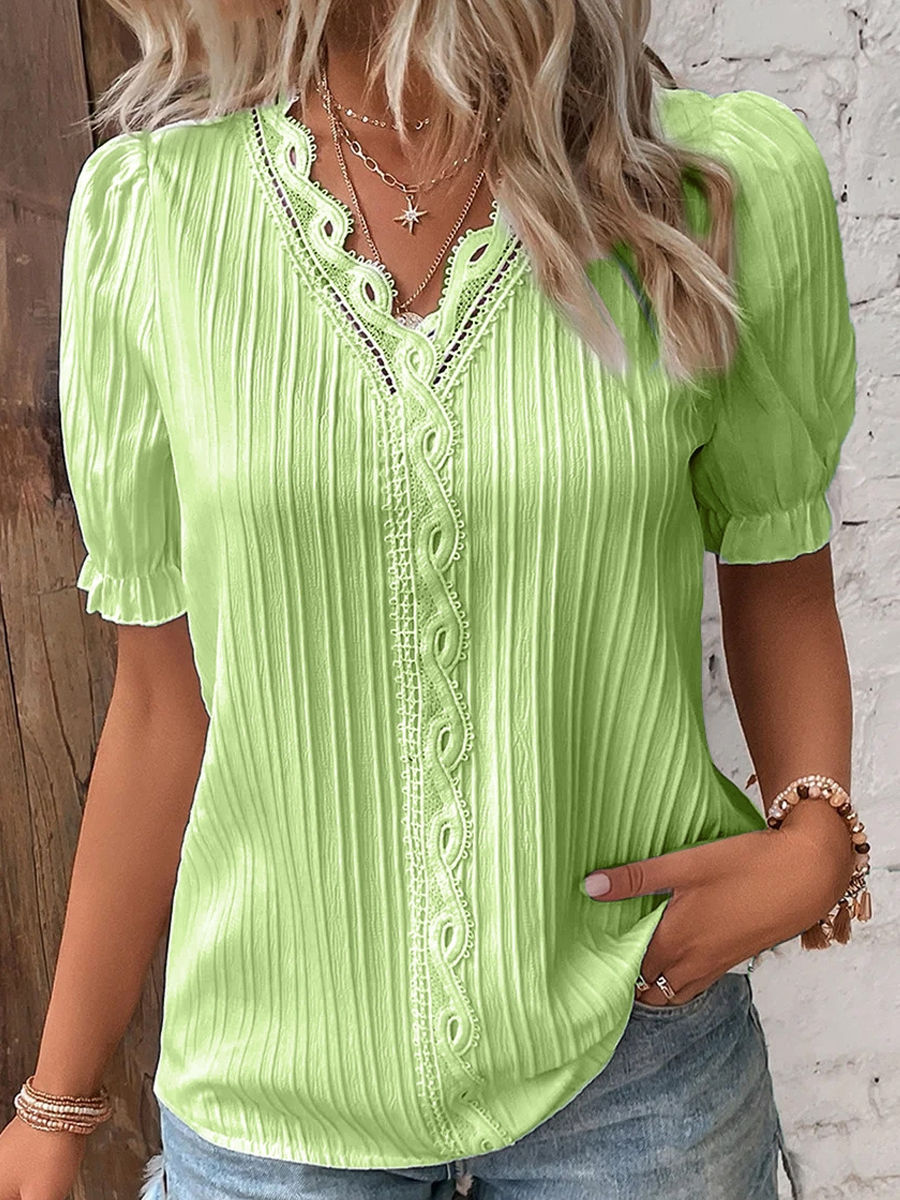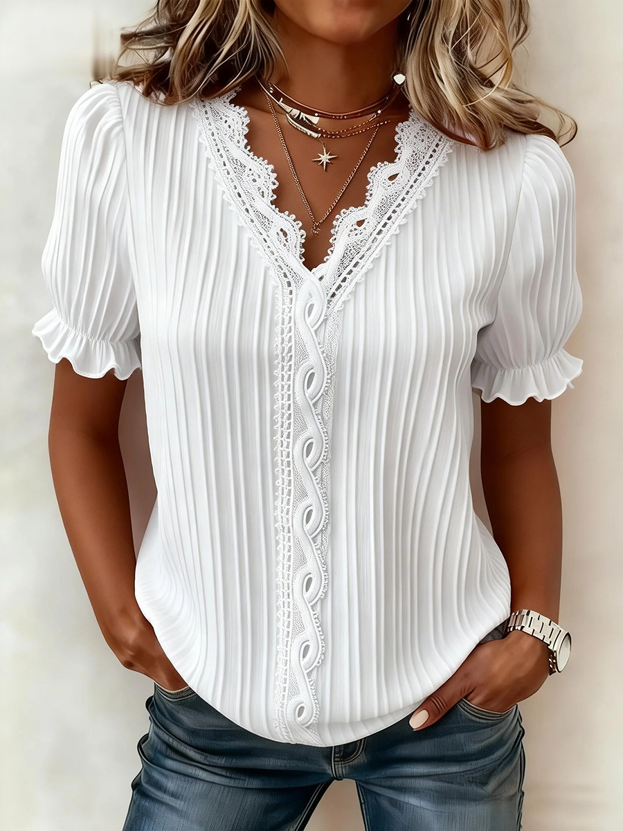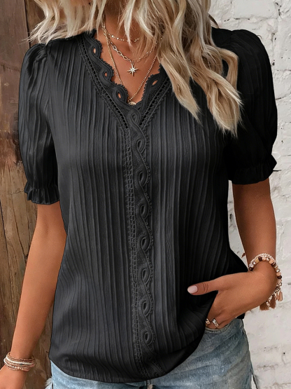 Women's Casual Elegant Lace-Paneled Short-Sleeve Shirt