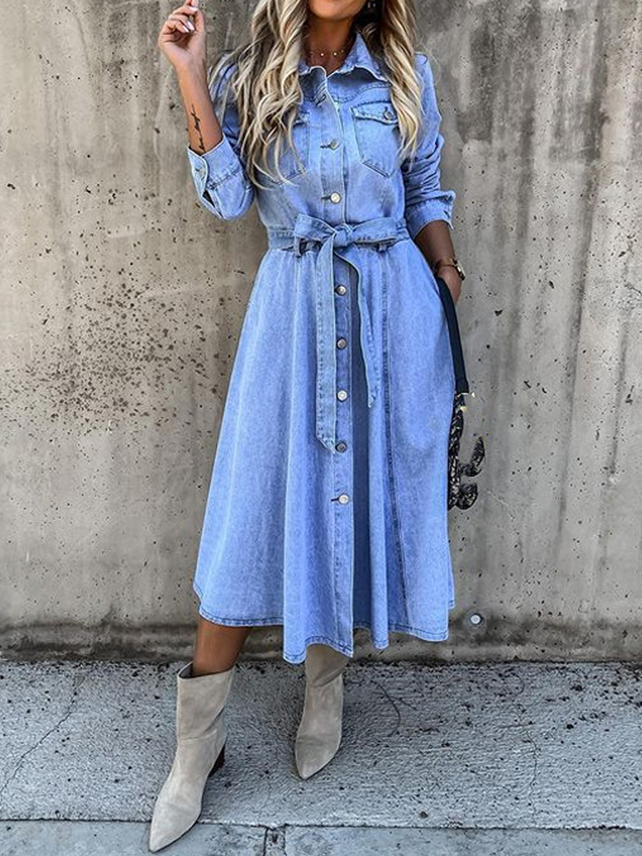 Women's Casual Elegant Long-Sleeve Denim Dress