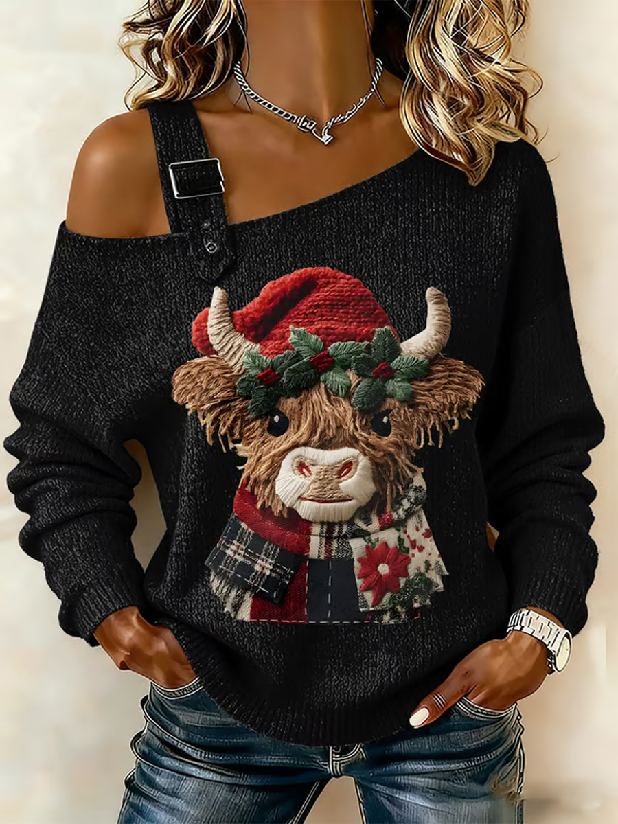 Women'S Casual Highland Cow Print Top