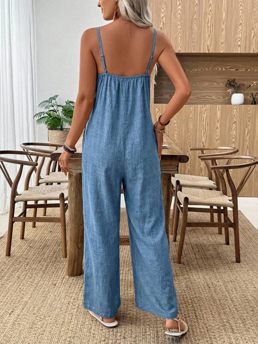 Women's Casual Solid Color Spaghetti Strap Wide-Leg Jumpsuit