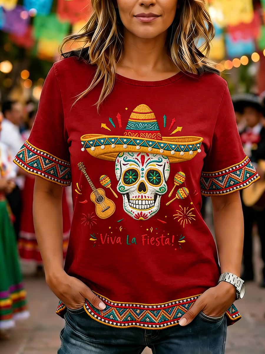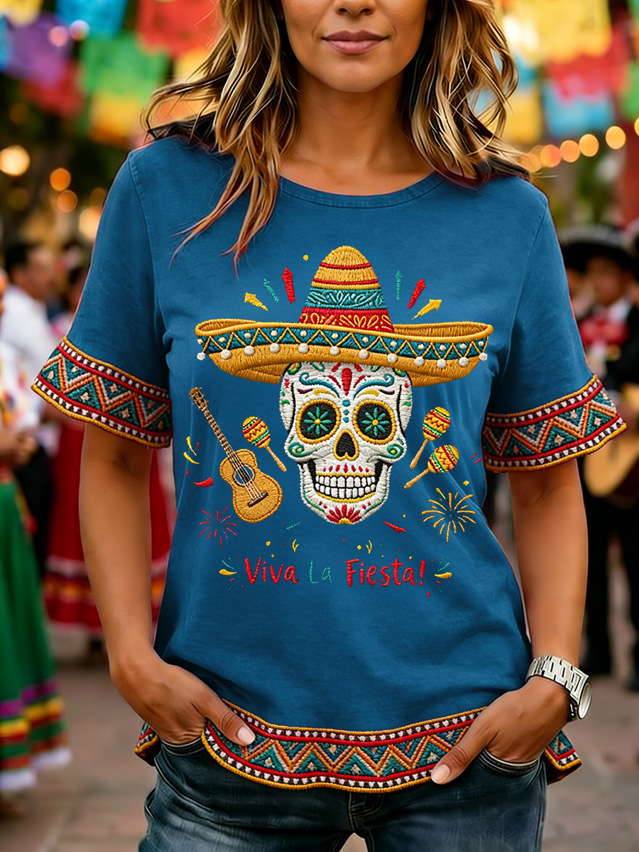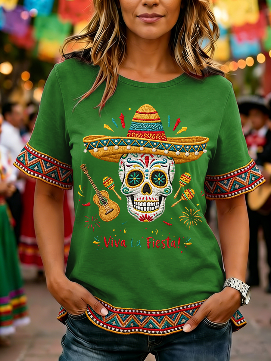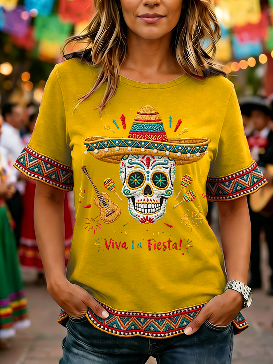Women's Cinco De Mayo Print Casual Ruffle Sleeve Tee