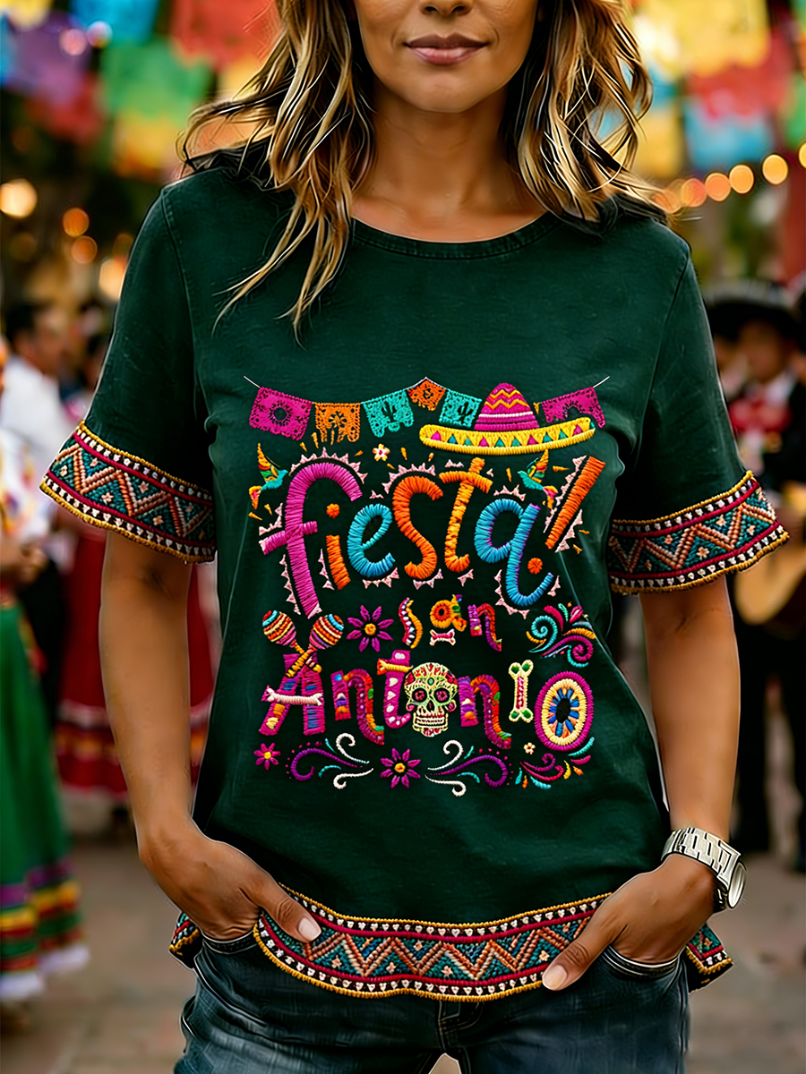 Women's Cinco De Mayo Print Casual Ruffle Sleeve Tee