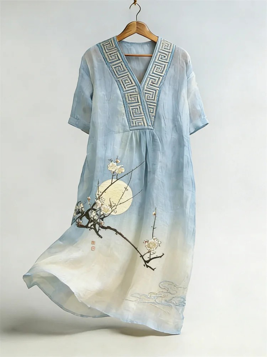 Women's Classy Japanese Landscape Art Linen Dress