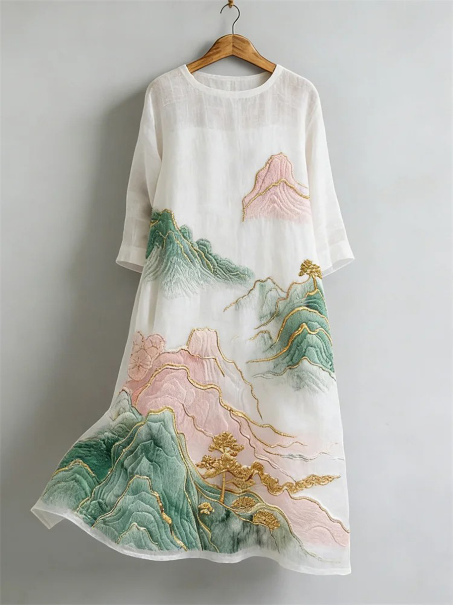 Women's Classy Japanese Landscape Art Linen Dress
