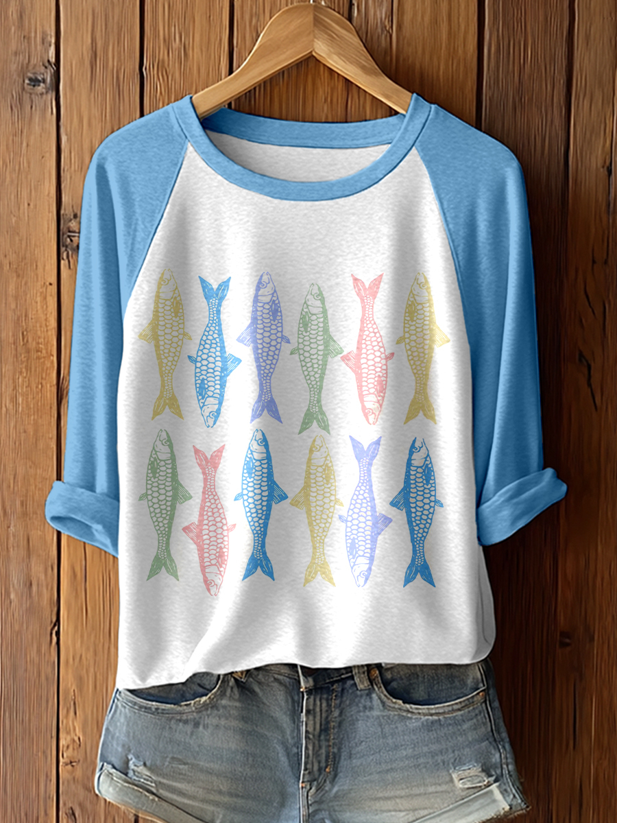 Women's Colorful Sardines Art Print T-shirt