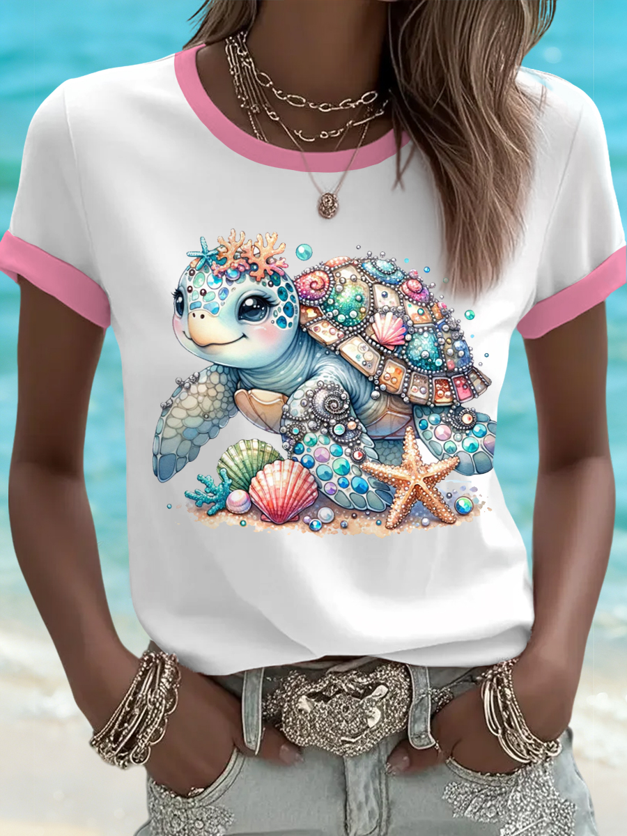 Women's Cute Sea Turtle Print Casual Tee