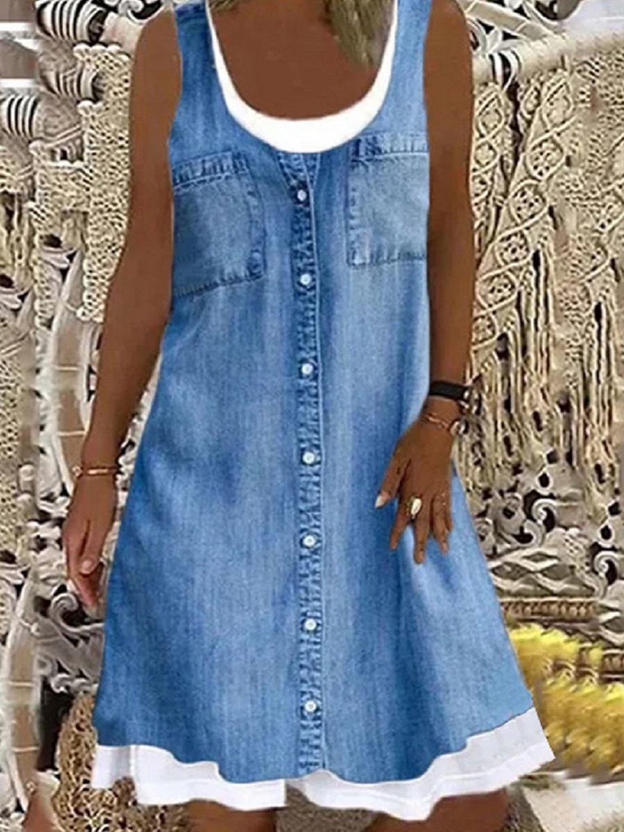 Women's Denim-Look Print Faux Two-Piece Dress
