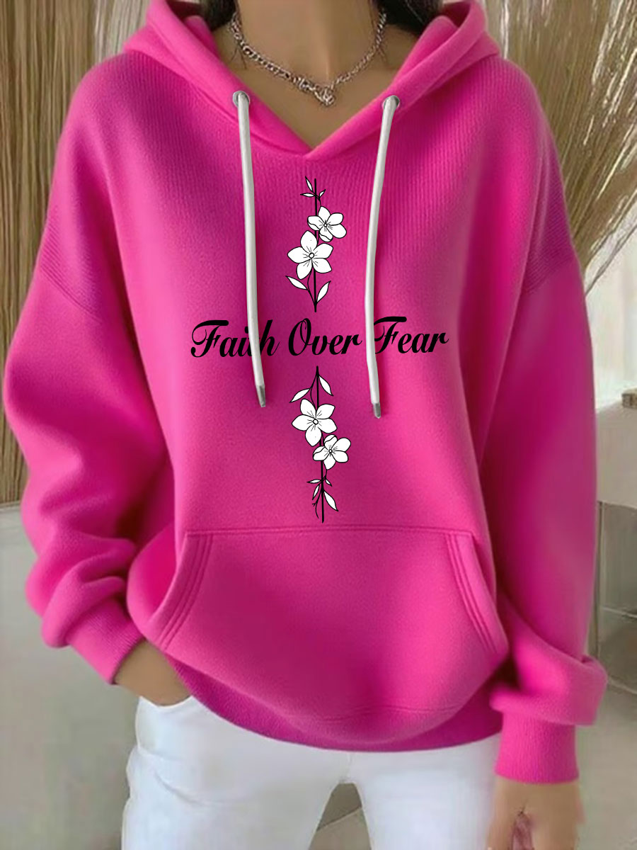 Women's Faith Over Fear Printed Casual Hoodie