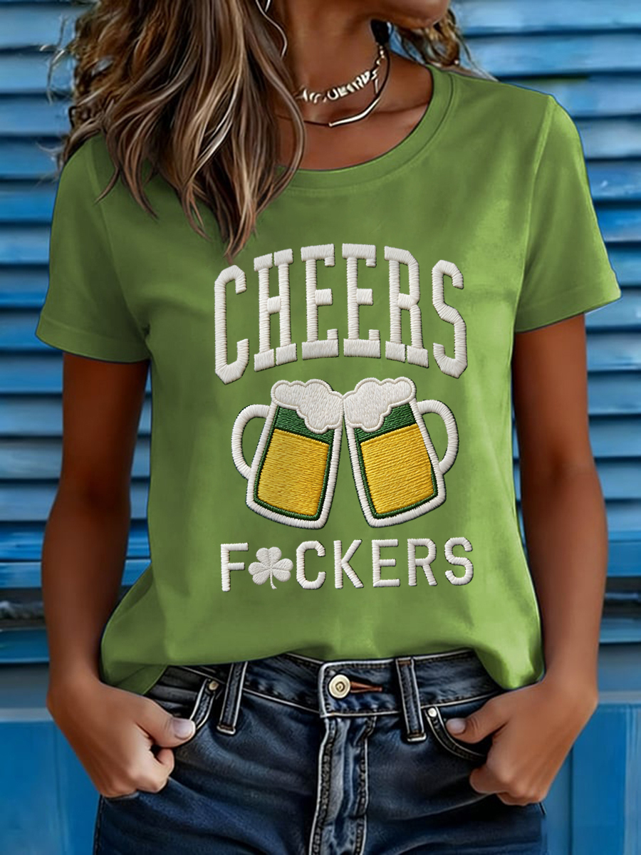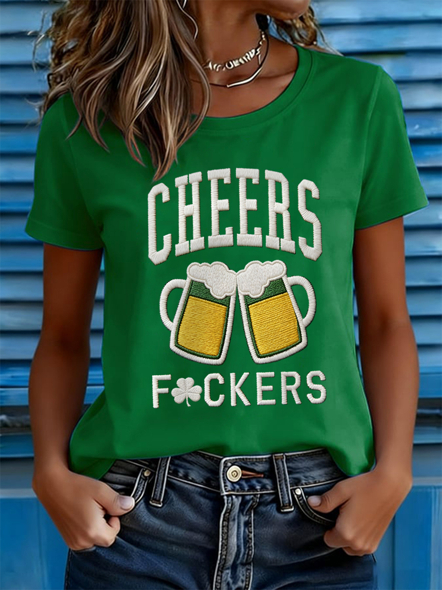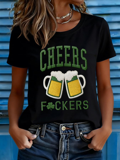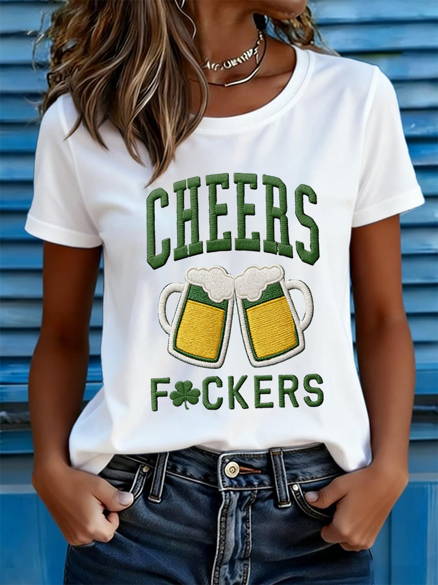Women's Funny St. Patrick's Day Cheers F*ckers Shamrock Print Casual Tee