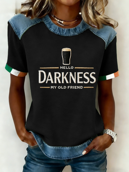 Women's Hello Darkness My Old Friend Patchwork Top