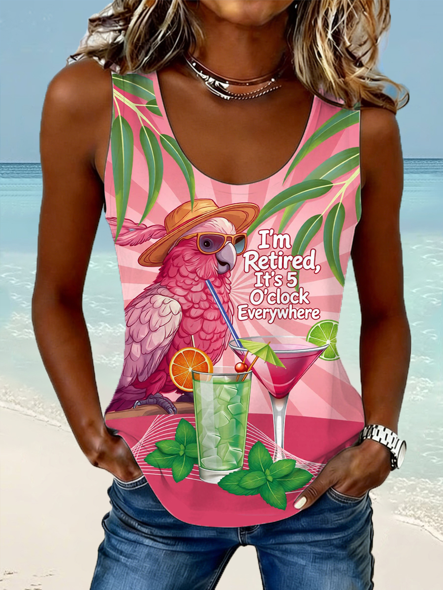 Women's I'm Retired, It‘s 5 O'clock Everywhere Parrot Print Casual Vest