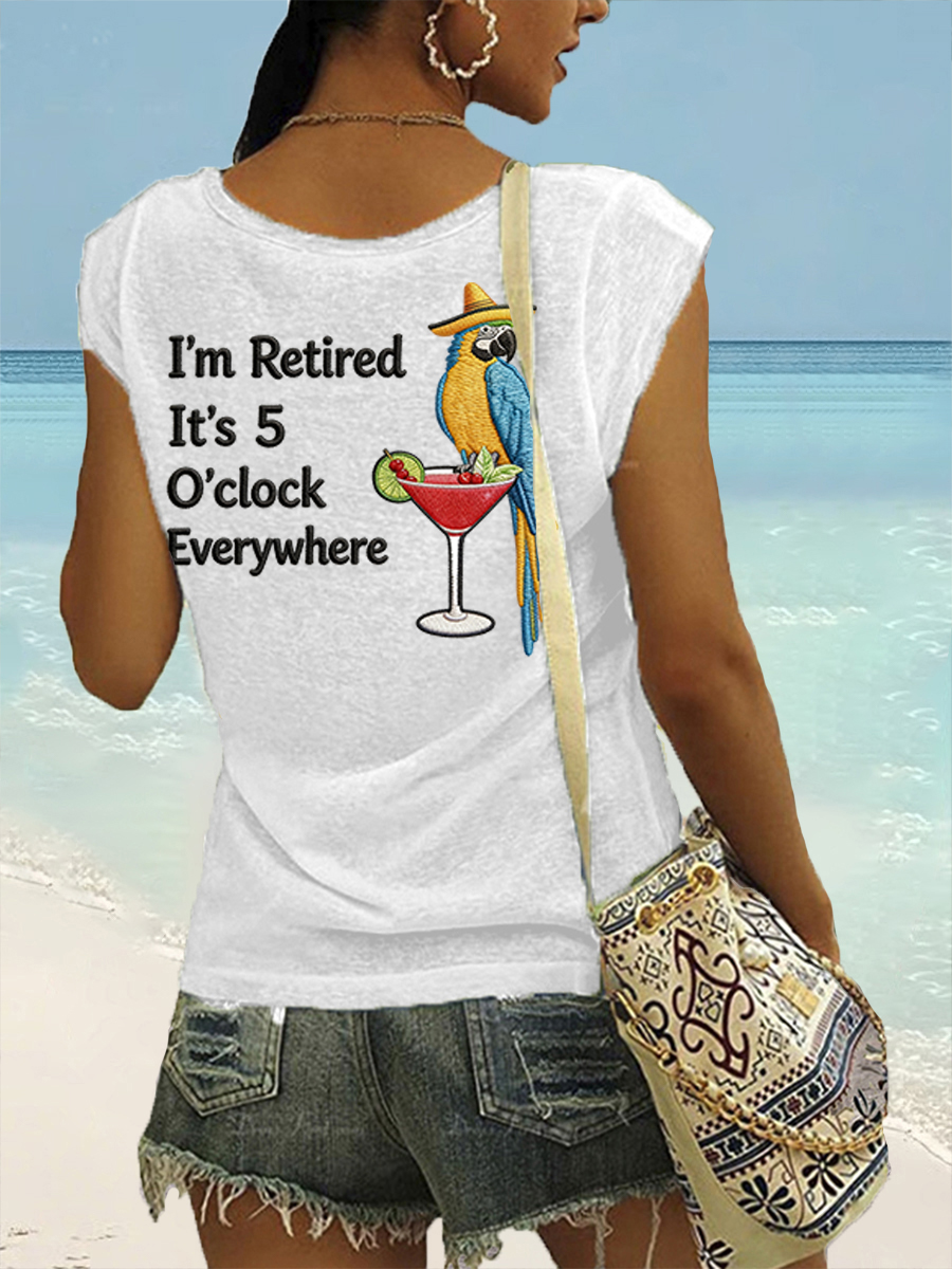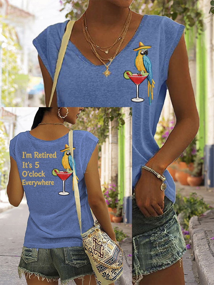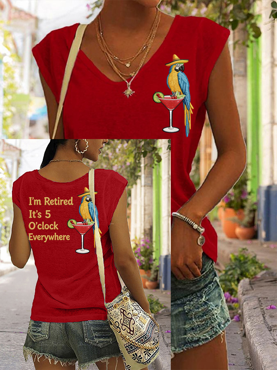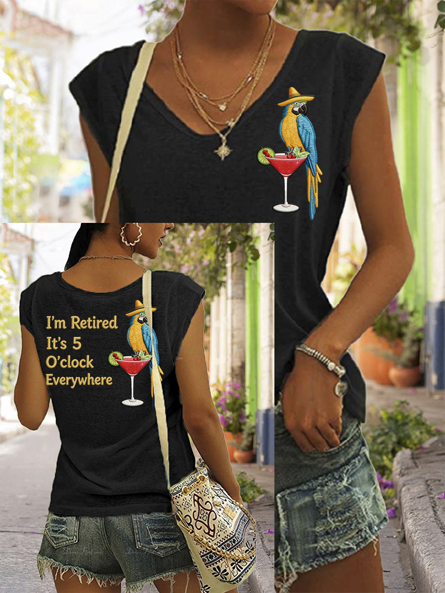 Women's I'm Retired It's 5 O'clock Everywhere Parrot Print Casual Sleeveless T-Shirt
