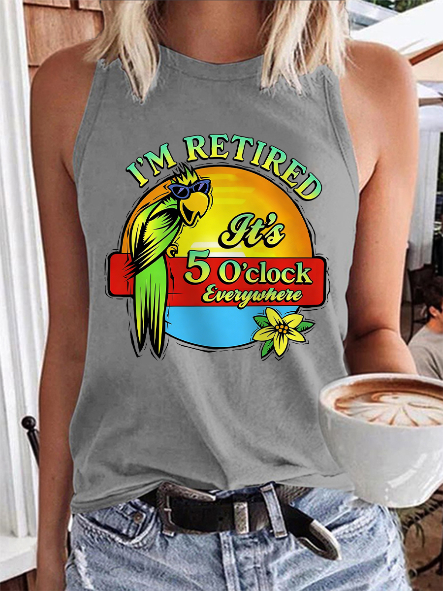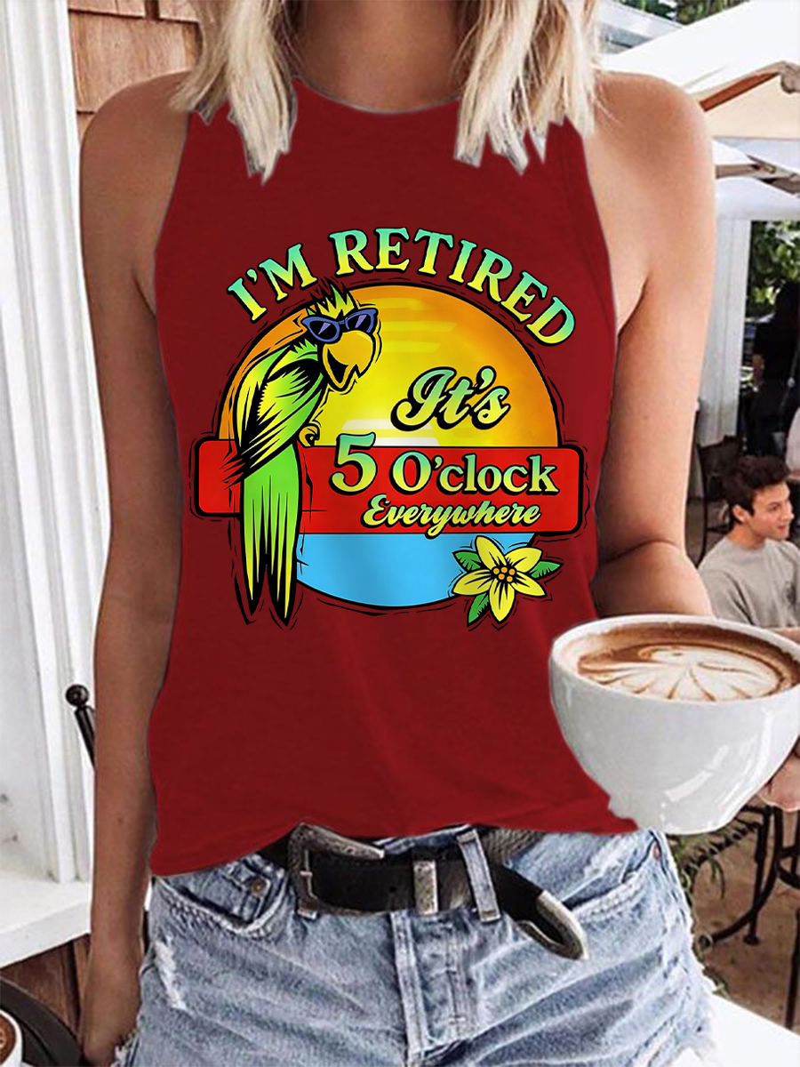 Women's I'm Retired It's 5 O'clock Everywhere Parrot Print Casual Vest