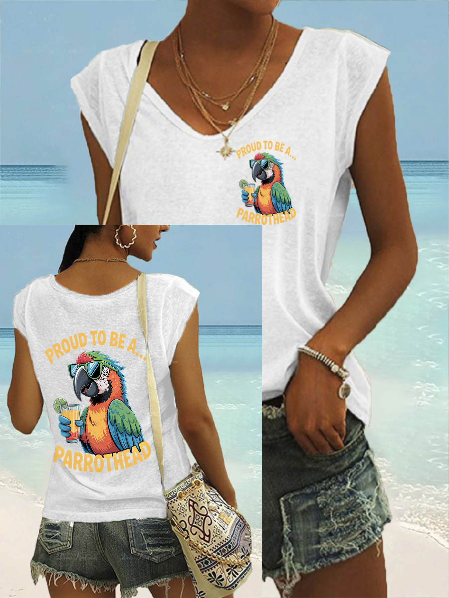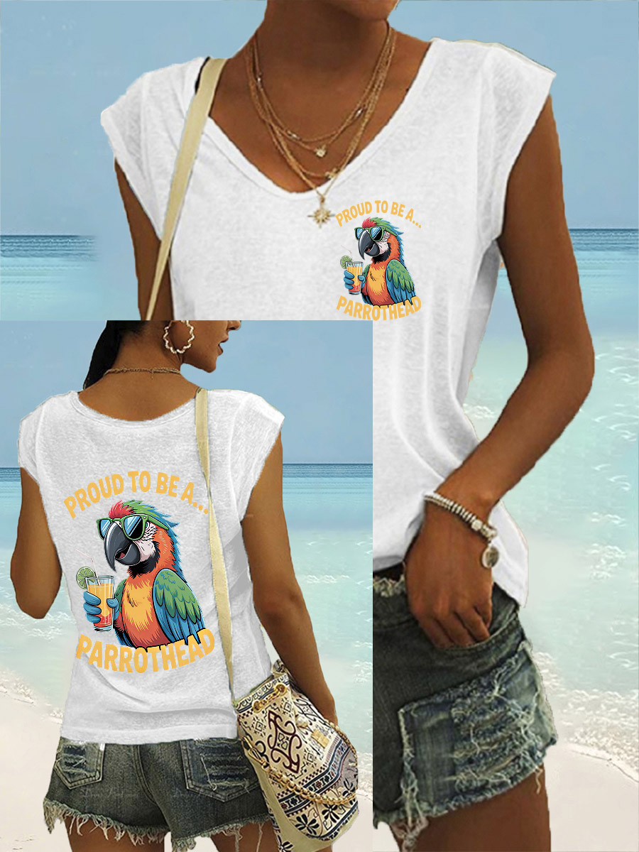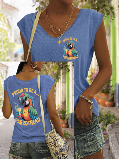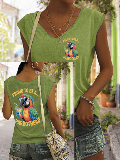 Women's I'm Retired Proud To Be A Parrothead Parrot Drinking Margarita Print Sleeveless T-Shirt